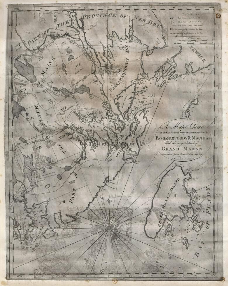 Benjamin R. Jones (1776-1859) | A map & chart of the bays harbours post roads and settlements in Passamaquoddy & Machias with the large island of Grand MananDescription