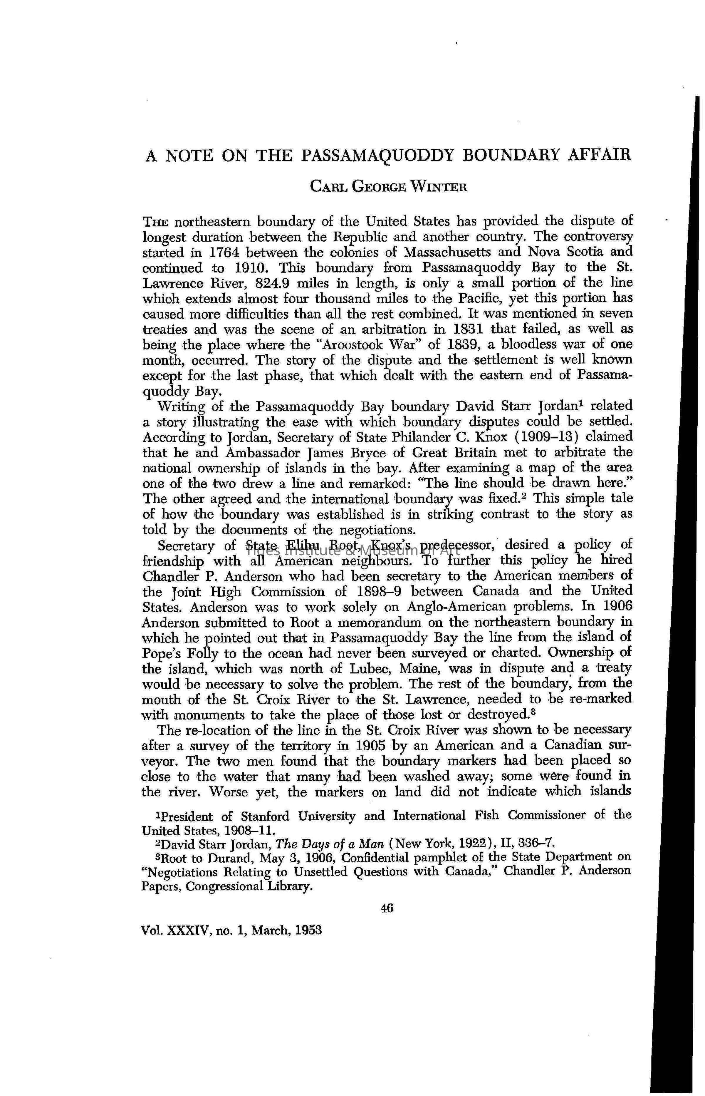 A Note on the Passamaquoddy Boundary Affair | Carl George Winter