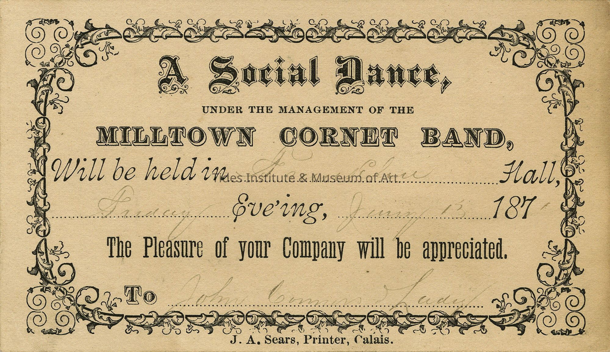 A Social Dance, Milltown Cornet Band | J.A. Sears, Printer, Calais, Maine