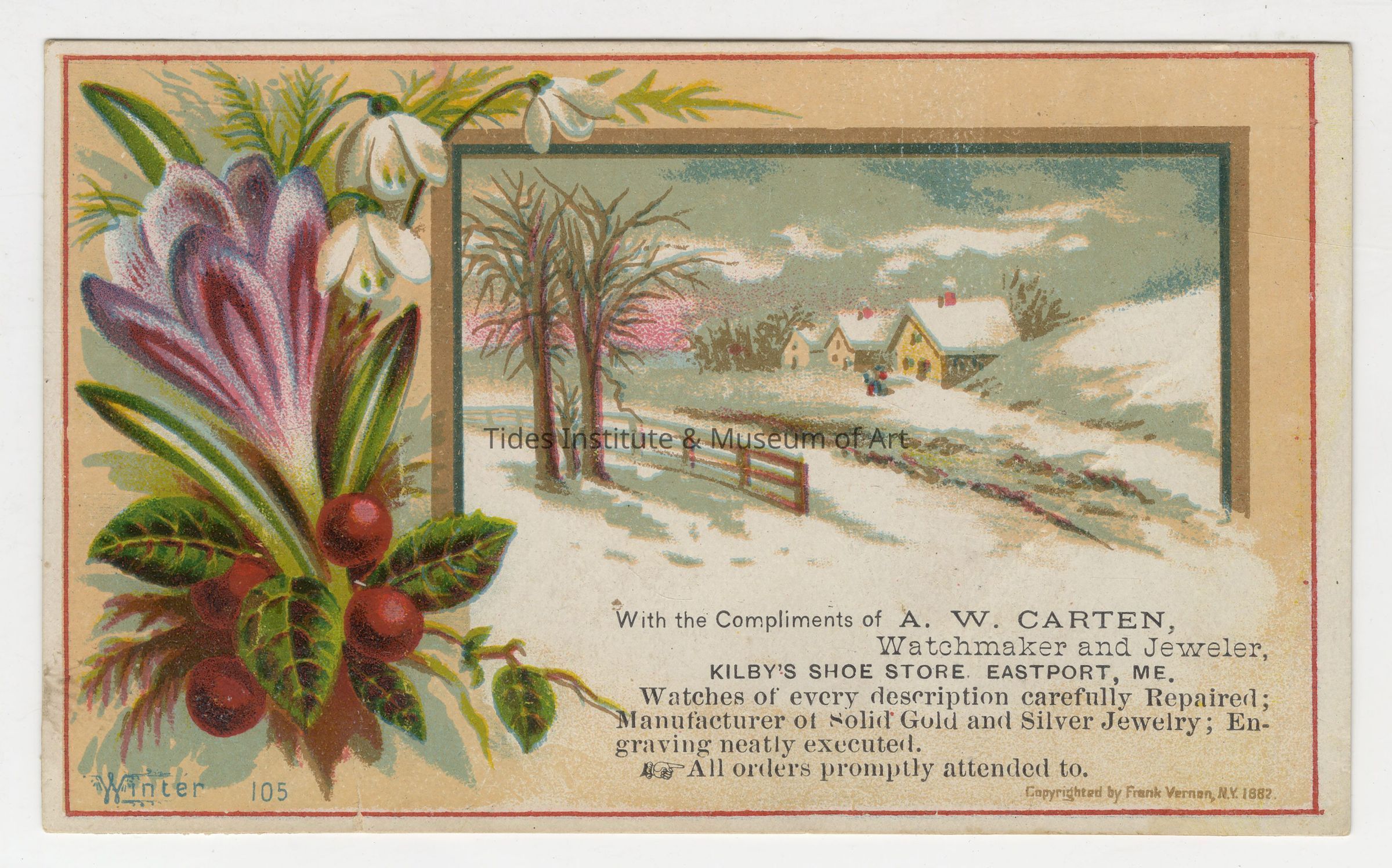 A. W. Carten Watchmaker and Jeweler | Eastport, Maine | Trade Card
