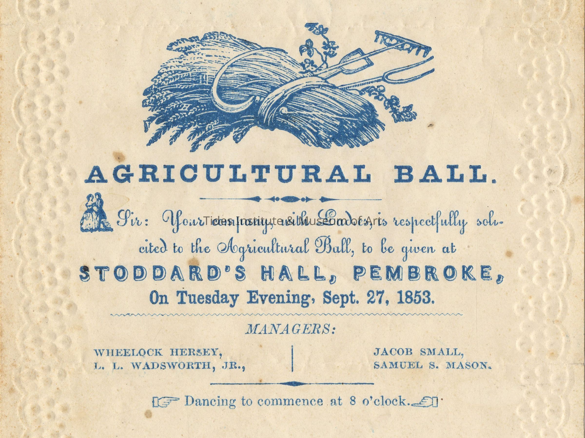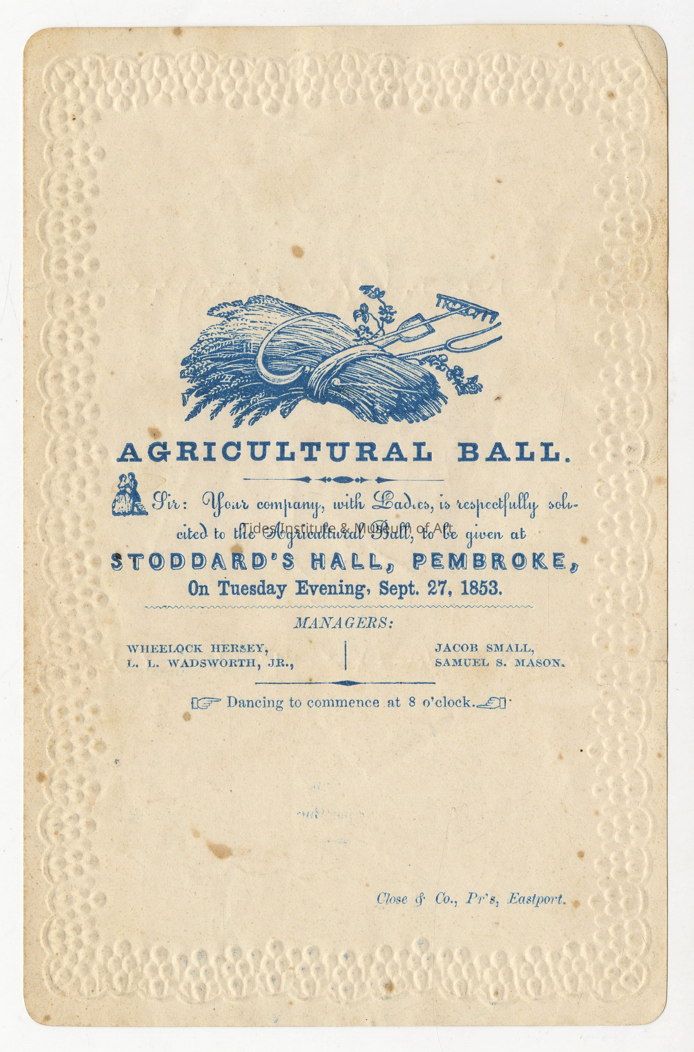 Agricultural Ball, Stoddard's Hall, Pembroke, Maine, September 27, 1853 | Dance Card