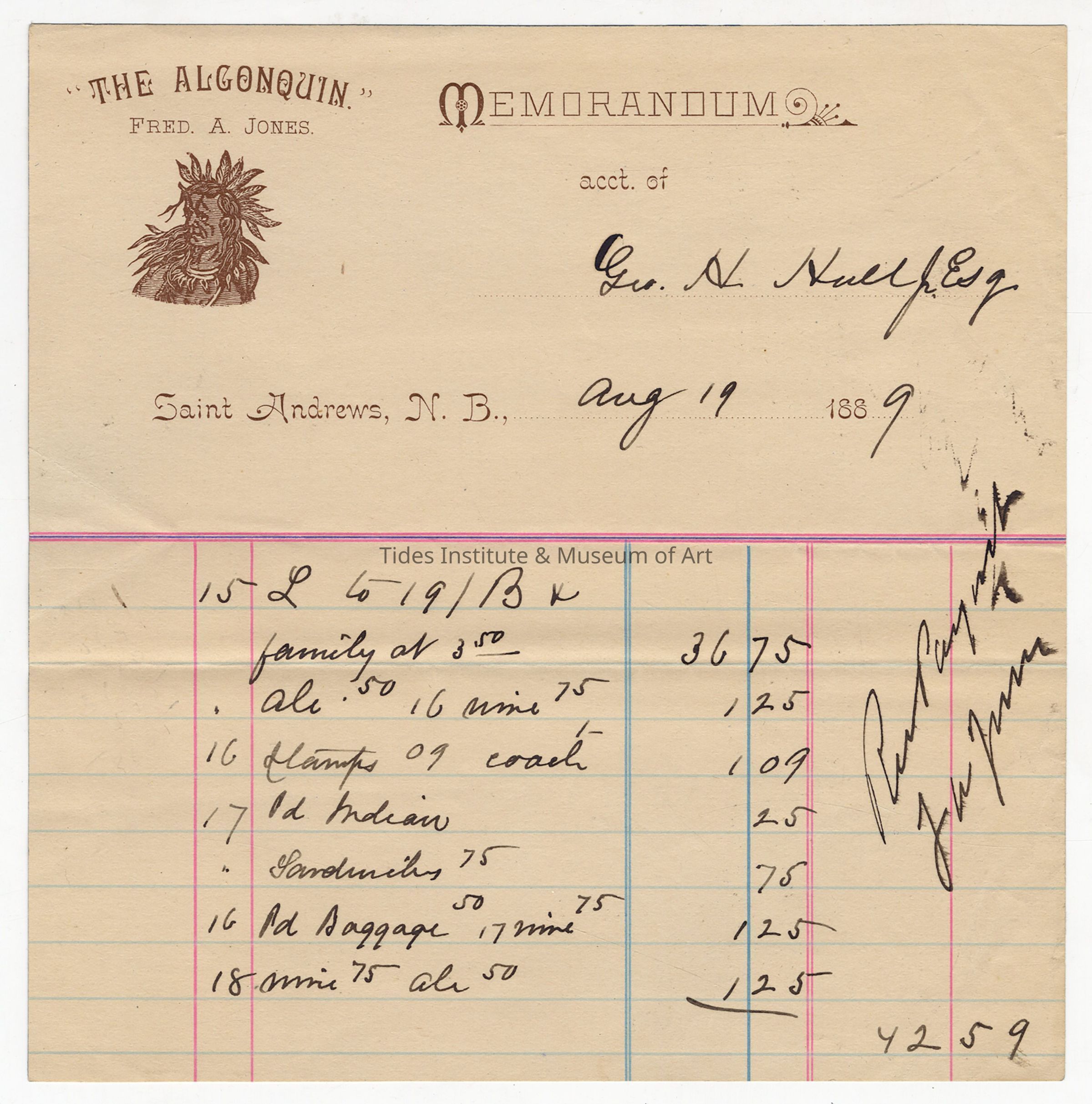 Algonquin Hotel | St. Andrews, New Brunswick | Logo and Invoice | 1889