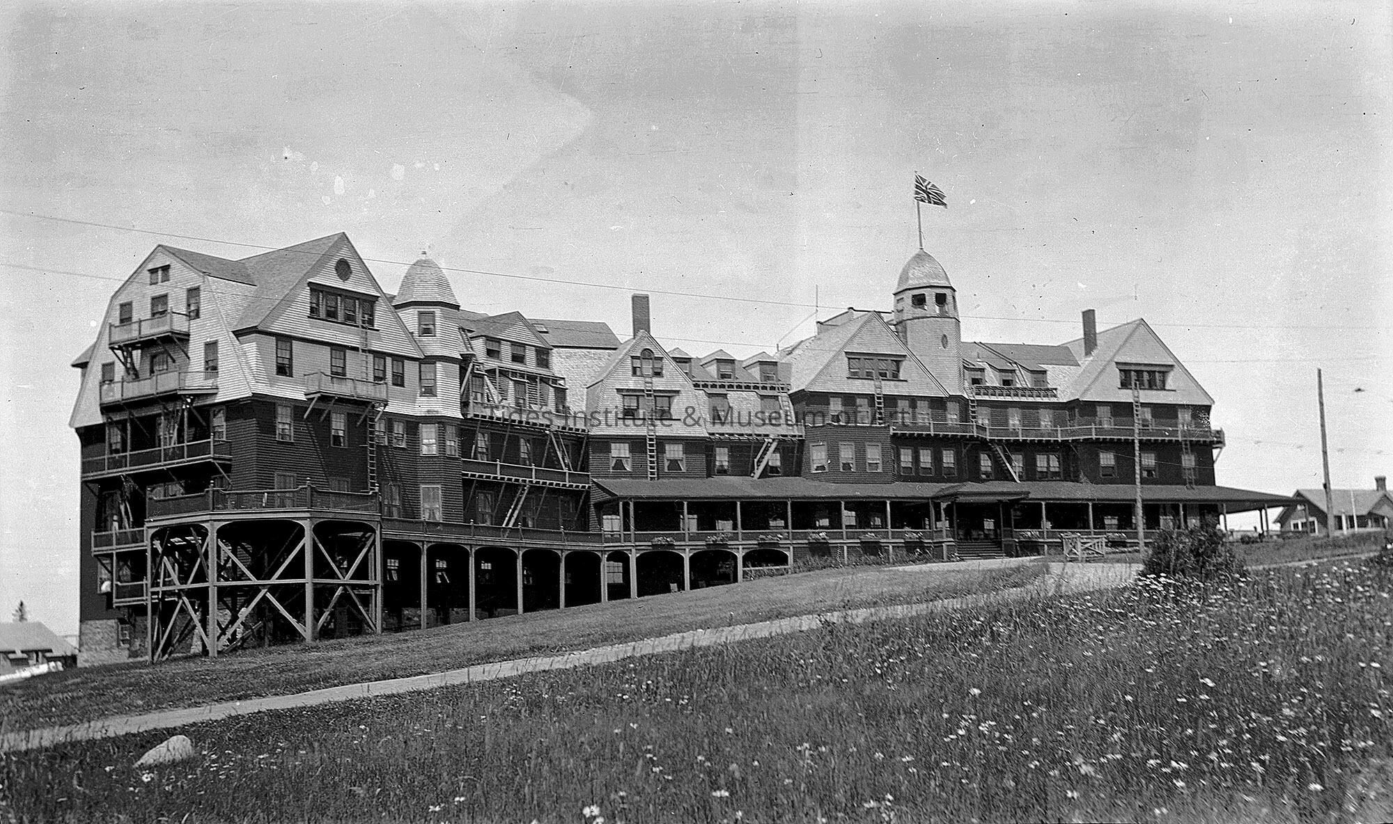 Photograph of the original Algonquin Hotel, St. Andrews, New Brunswick. The original Algonquin Hotel was built in 1889 and burned down in 1914.