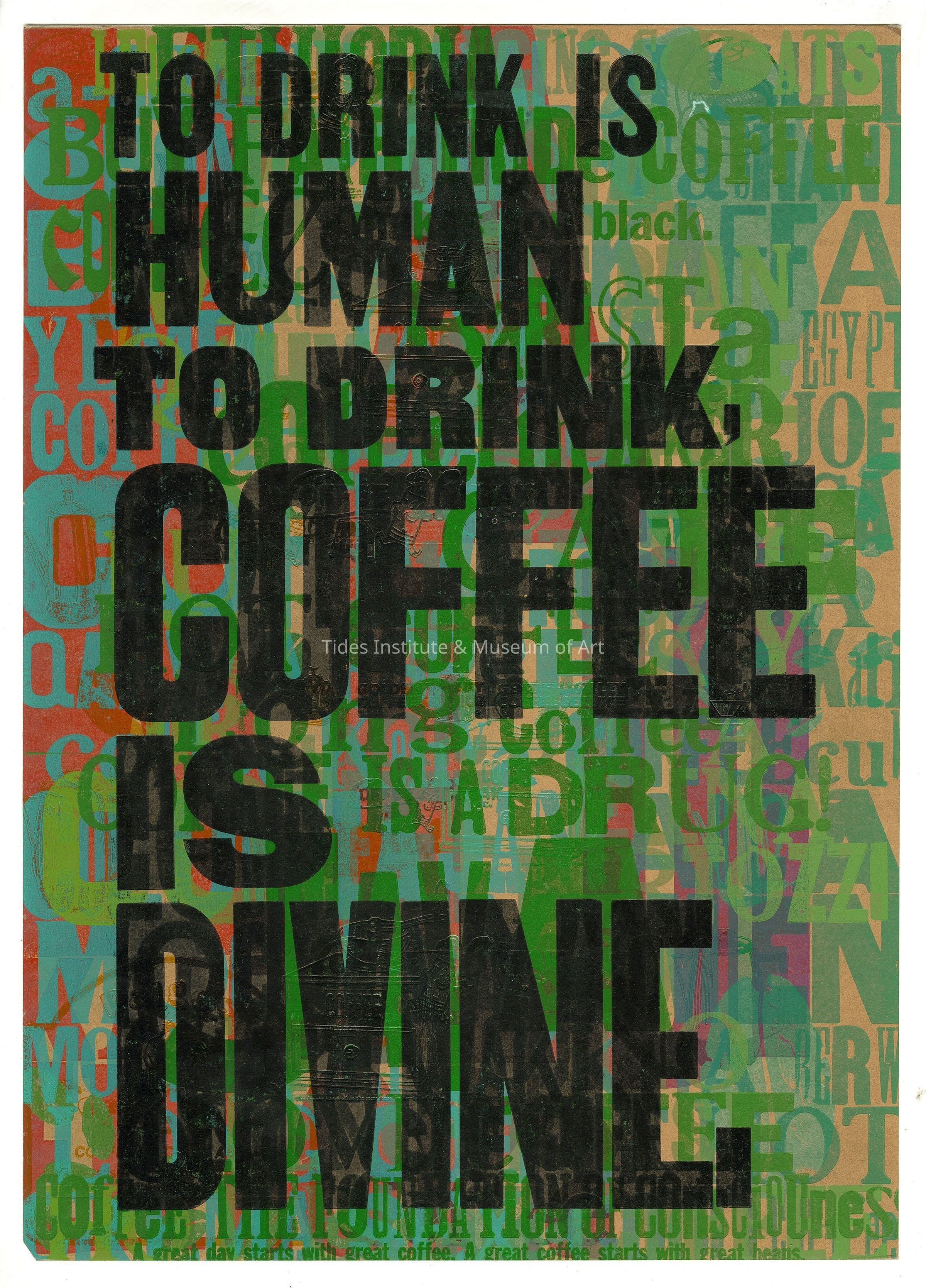 Amos Paul Kennedy | To Drink is HUMAN, To Drink COFFEE is DIVINE | Letterpress Poster #13Description