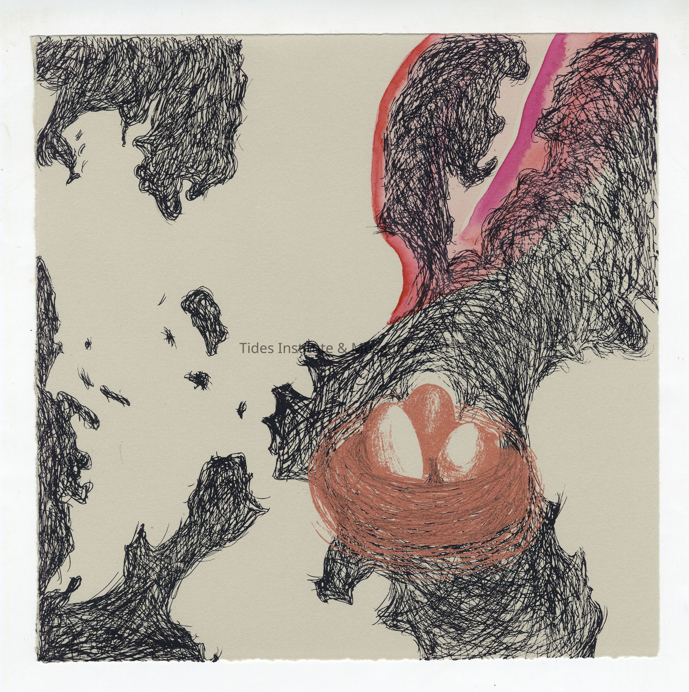 Amy Adams (hand-colored screenprint) – Mother is an eco-feminist print influenced by studying the birdlife in this region, the feminine forms inherent in the shape of the land and water, and the metaphor of Mother Earth.