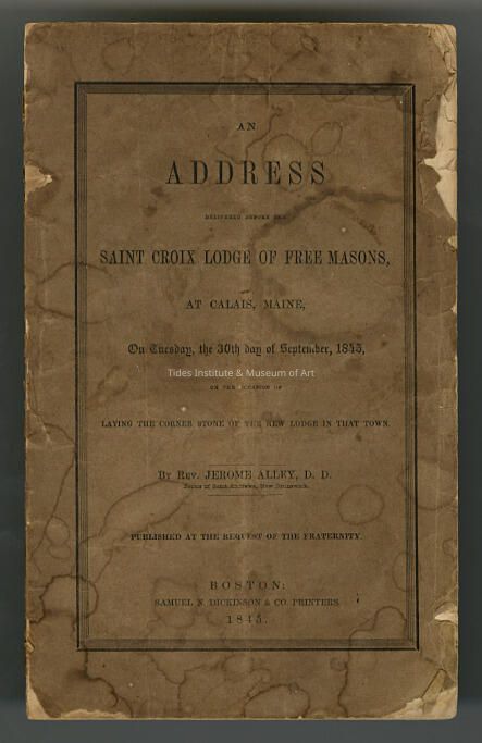 An Address Delivered before the Saint Croix Lodge of Free Masons at Calais, Maine on Tuesday, the 30th Day of September, 1845 | Rev. Jerome Alley