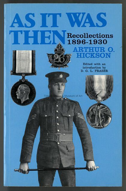 As It Was Then: Recollections, 1896 - 1930, A Memoir by A.O. Hickson | Edited with an Introduction by D.G.L. Fraser
