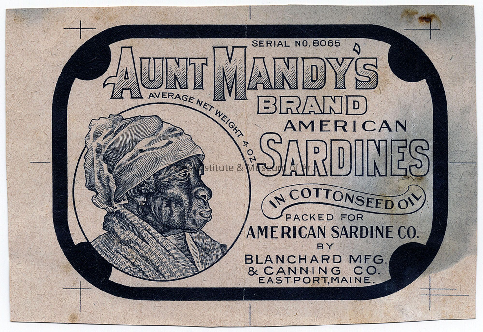 Packed for American Sardine Company by Blanchard Manufacturing and Canning Company, Eastport, Maine.
