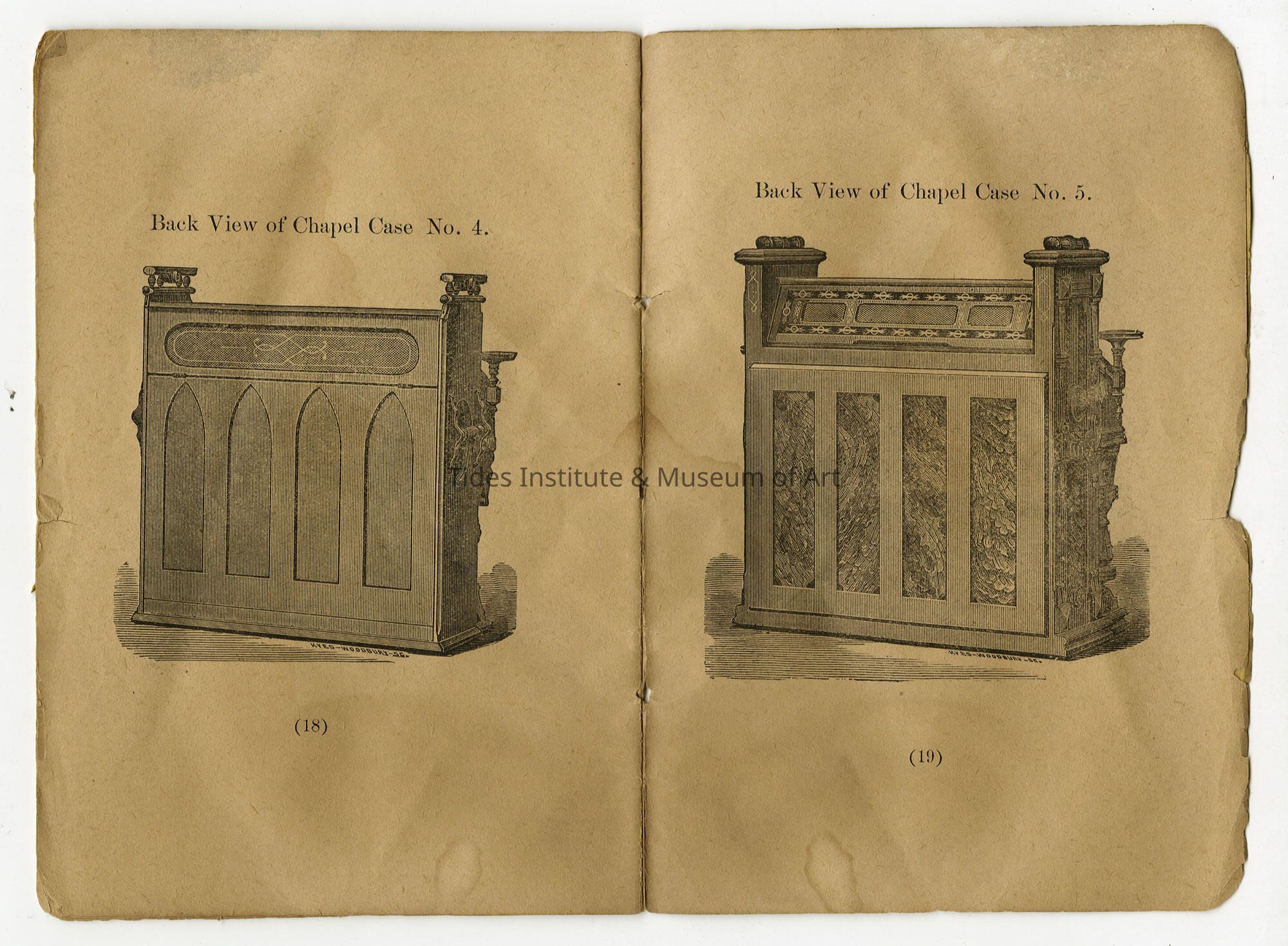 Back Views of Chapel Cases Nos 4 & 5. From Catalogue of Wm. E. Leighton & Co's Cabinet Organs [Pembroke, Maine] | [No Artist Defined]