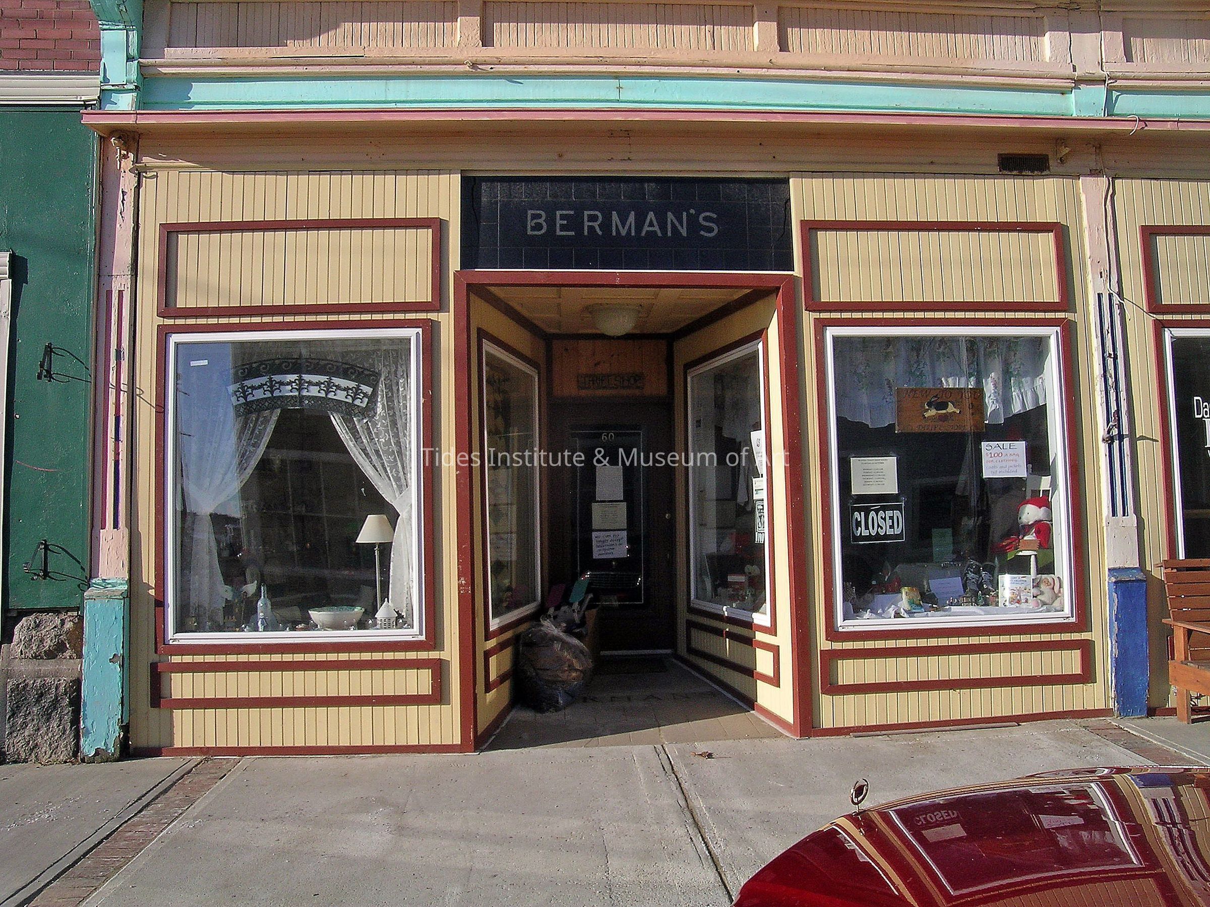 14) Berman Clothing (NR) 60, 62 & 64 Water St., 1887/1929, Italianate. After the fire of 1886, P. Whalen had three stores built as the Whalen Block. Two of those stores and the Bibber store would later become Berman's Clothing Store. The Bibber store was a dry goods store in the 1880s and 1890s. The Berman store is where the 1928 K of P Fire started. The store was rebuilt and continued as a clothing store into the 1960s. The uniqueness of the Berman Block was that it had three doors on Water Street for one store.