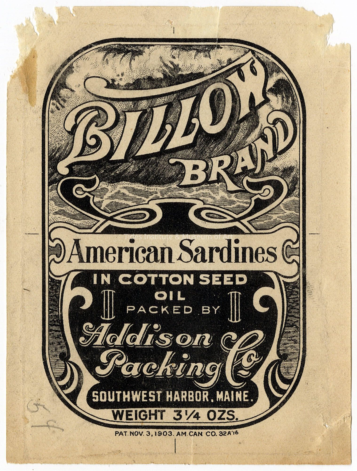 Old Accession Number: 738 Circa: 1903 Description: Packed by Addison Packing Co. Southwest Harbor, Maine.