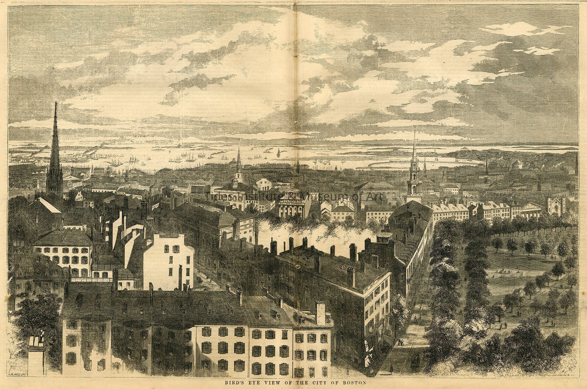 Bird’s Eye View of the City of Boston | Edit Ballou’s Pictorial Drawing-Room Companion. March 22, 1856, pp. 184-185Description
