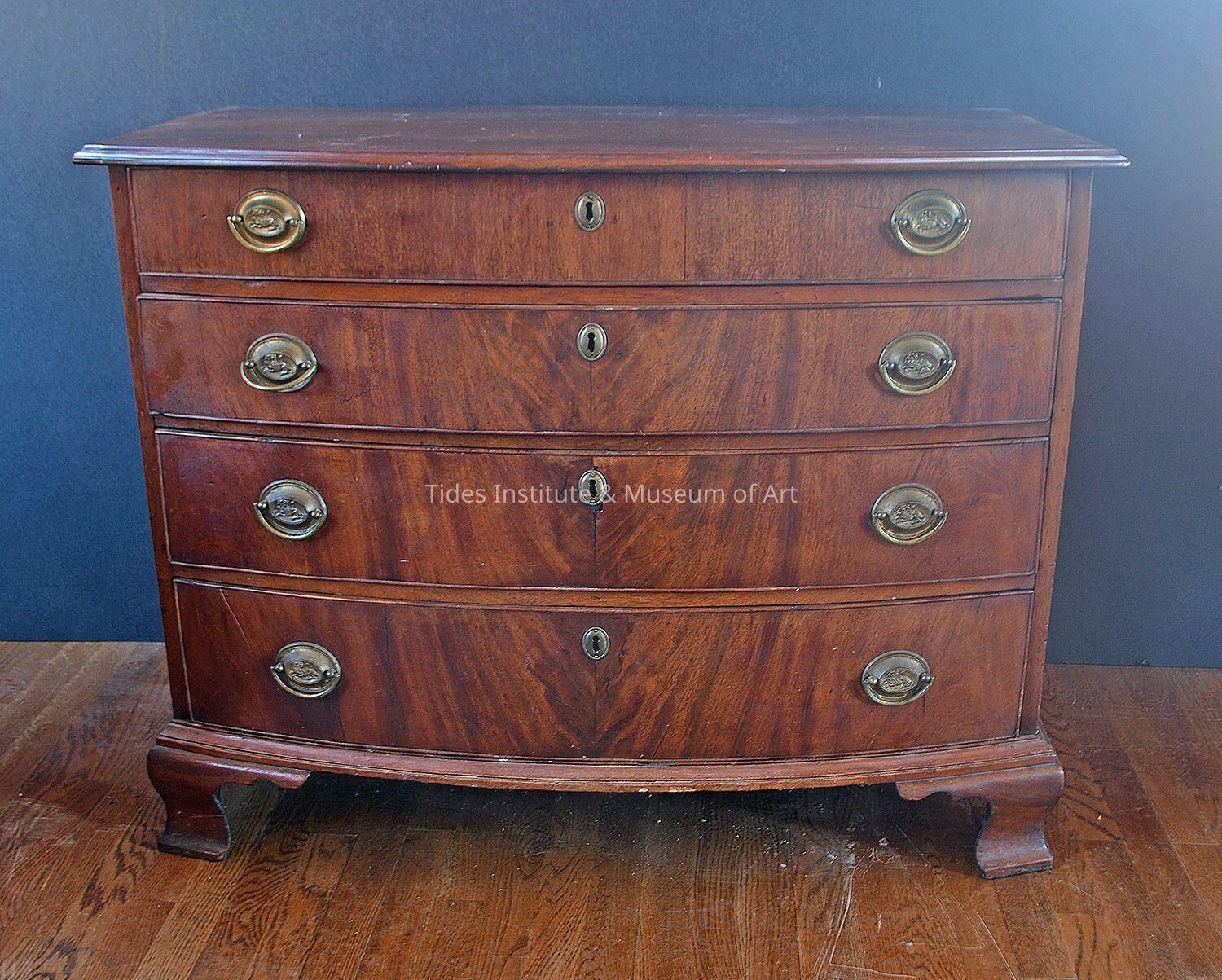 Classification: Furniture Circa: 1810 Old Accession Number: 3004 Description: Bow Front Chest of Drawers that originally came from Indian Island, New Brunswick.