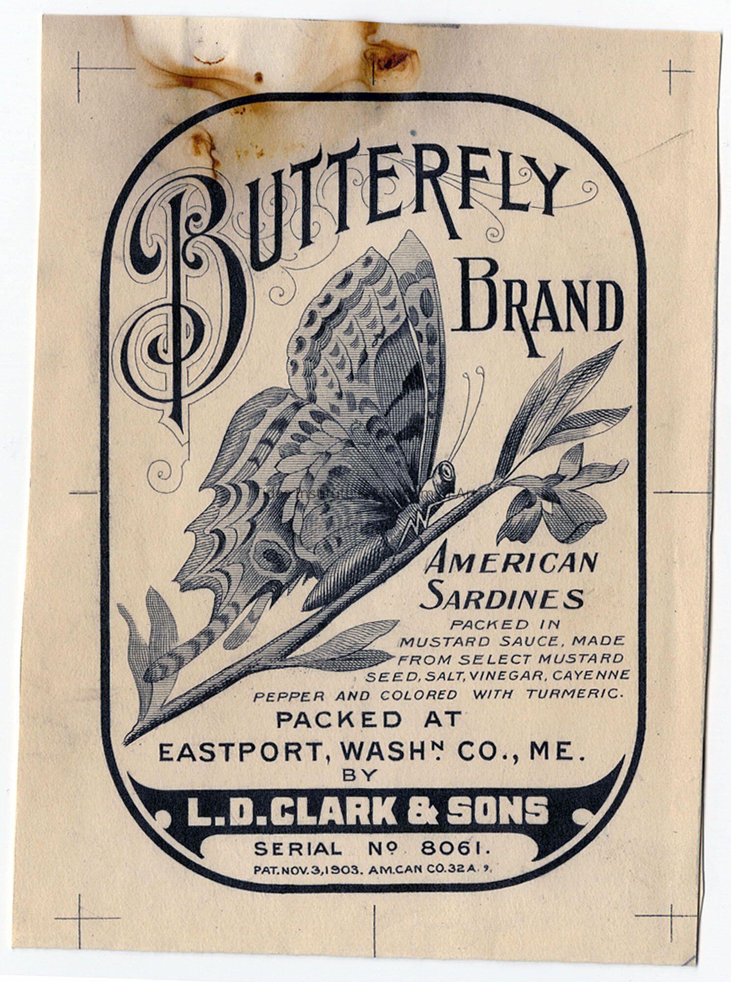 Old Accession Number: 739 Circa: 1903 Description: Packed at Eastport, Washington County., ME. L.D. Clark and Sons.