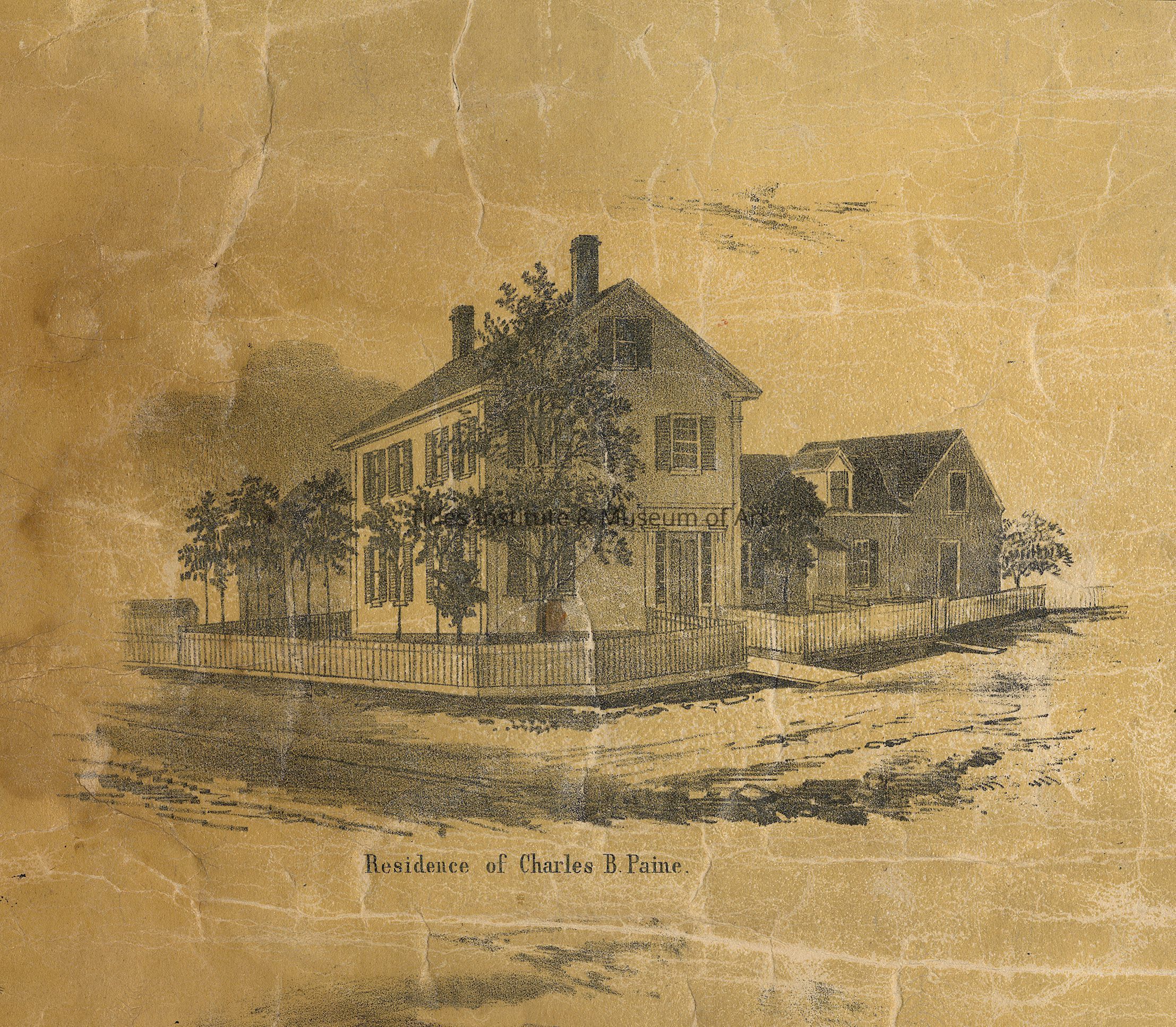 This two and half story house dates to about 1841. It has a gable roof with chimneys at each end. Two one story bay windows were later added to the east side of the house as was a rear addition. The front entrance faces the intersection of Third and Water Streets and and has a later covered porch running nearly the full length of the north side of the house. A recent owner of the house reported that he found a broken headstone for the original owner of the house, C.B. Paine, in the basement of the house.