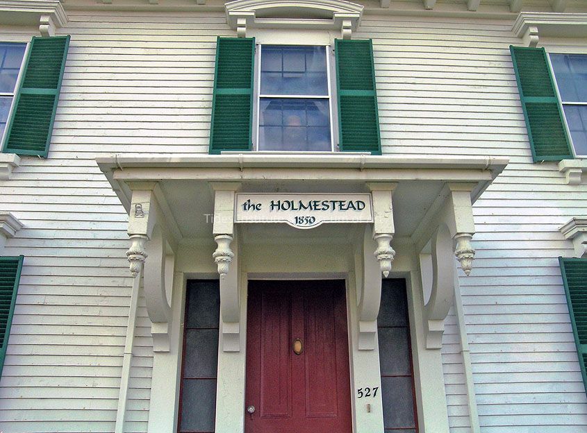 The district is comprised of a group of nineteenth century buildings that include well preserved examples of Federal, Greek Revival, and Queen Anne style buildings. With the exception of two brick structures (6, 14), these buildings are of frame construction typically with weather board sheathing. The oldest house in the district is the Federal period Holmes Cottage (11), a one-and-a-half story, five-bay cape featuring a central chimney. A second Federal house (14) was built about 1830 of brick. Its two-story five-bay facade is centered on a recessed entry surmounted by a fanlight.
