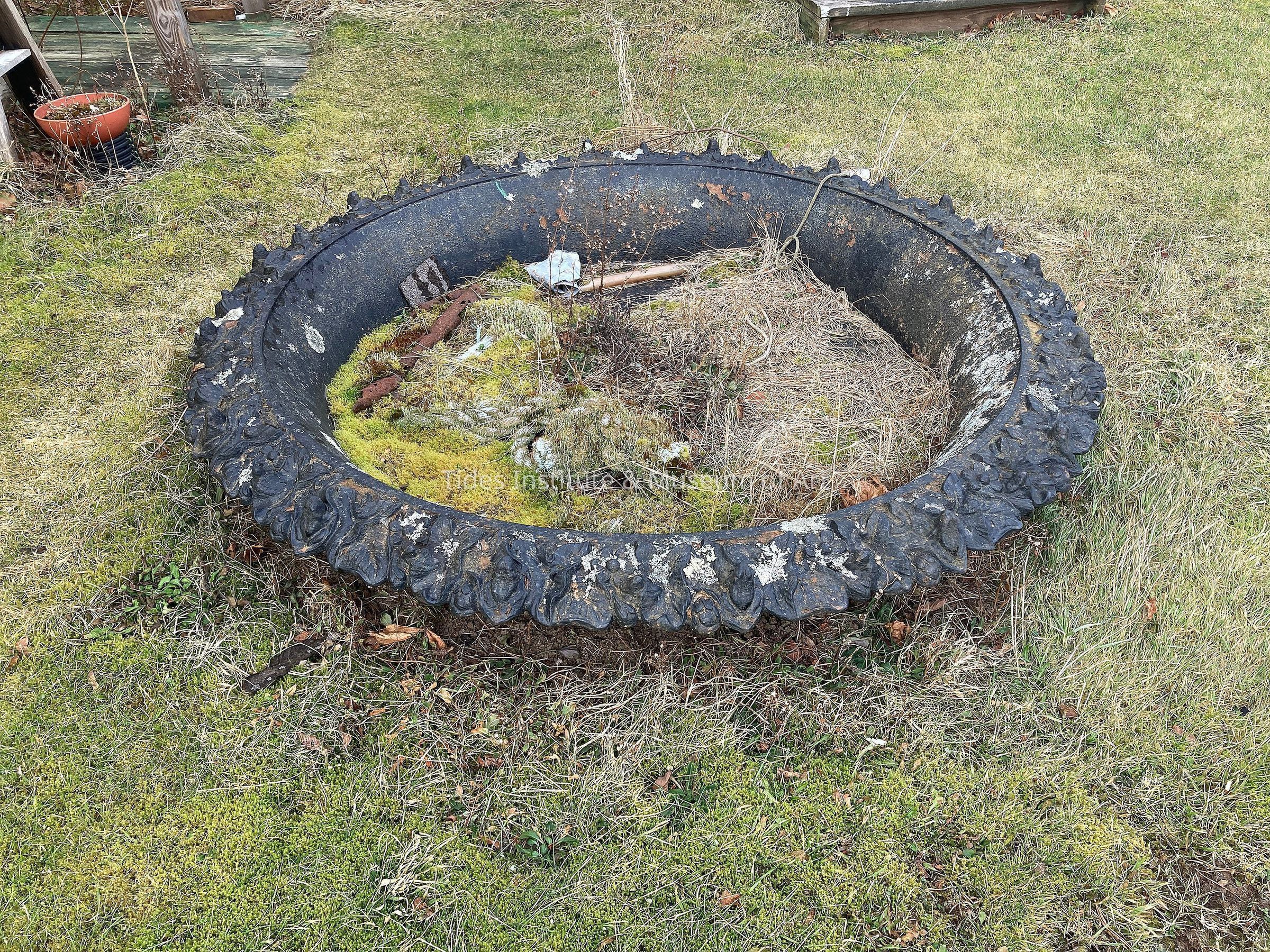 Cast iron basin of this fountain is in the collections of the Tides Institute & Museum of Art. Gift from the Eastport, Maine Port Authority. Diameter of cast iron fountain is approximately 80".