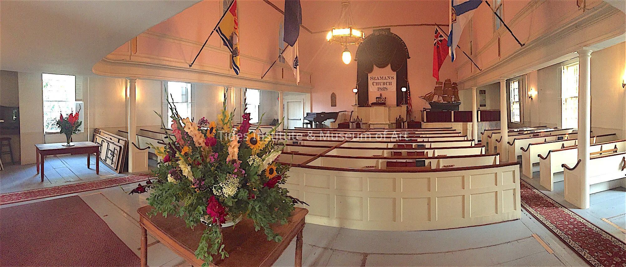 The building and property were gifted to TIMA by the Central Congregational Church and Society congregation in 2016. Many of the original church records are now in the collections of TIMA. TIMA is developing the building for TIMA and other public talks, workshops, celebrations, and receptions; as exhibition space for maritime and architectural artifacts drawn from TIMA’s extensive collections; as an important feature of a walking tour of TIMA’s campus of historic buildings; and for other community events. A small contemplative park, including an historic Victorian Playhouse, is planned for the rear of the building. The main sanctuary space can host an audience of up to 150 people. Until 2024, the small remaining congregation continued to meet seasonally at the church building on Sunday mornings until they disbanded in 2025.