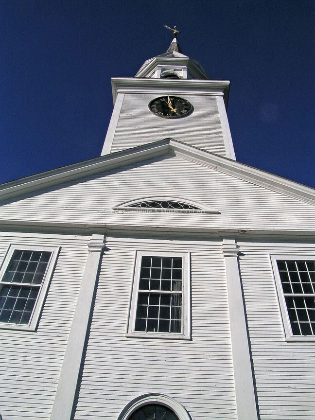 Built in 1829 by architect-builder Daniel Low, of Eastport, Central Congregational Churchis called "one of the finer provincial Federal style churches in the state. On a stone foundation, the wooden frame building is covered with clapboards. The front entrance has 3 doors, the center door being taller, each with arches and fan lights. Three 12-over- 12 windows, each above a door, punctuate the balcony floor. The square tower holds front and side clock faces, and above is the spire, which was added in 1831. After the 1869 Saxby Gale blew off that spire, a differently designed spire was restored. Only a few years ago this church has also survived being struck by lightning, but has been restored. A wrought iron weather vane crowns the spire. The interior is large, with an arched ceiling. The pews have been filled both for worship and for musical concerts. F AB, JCB