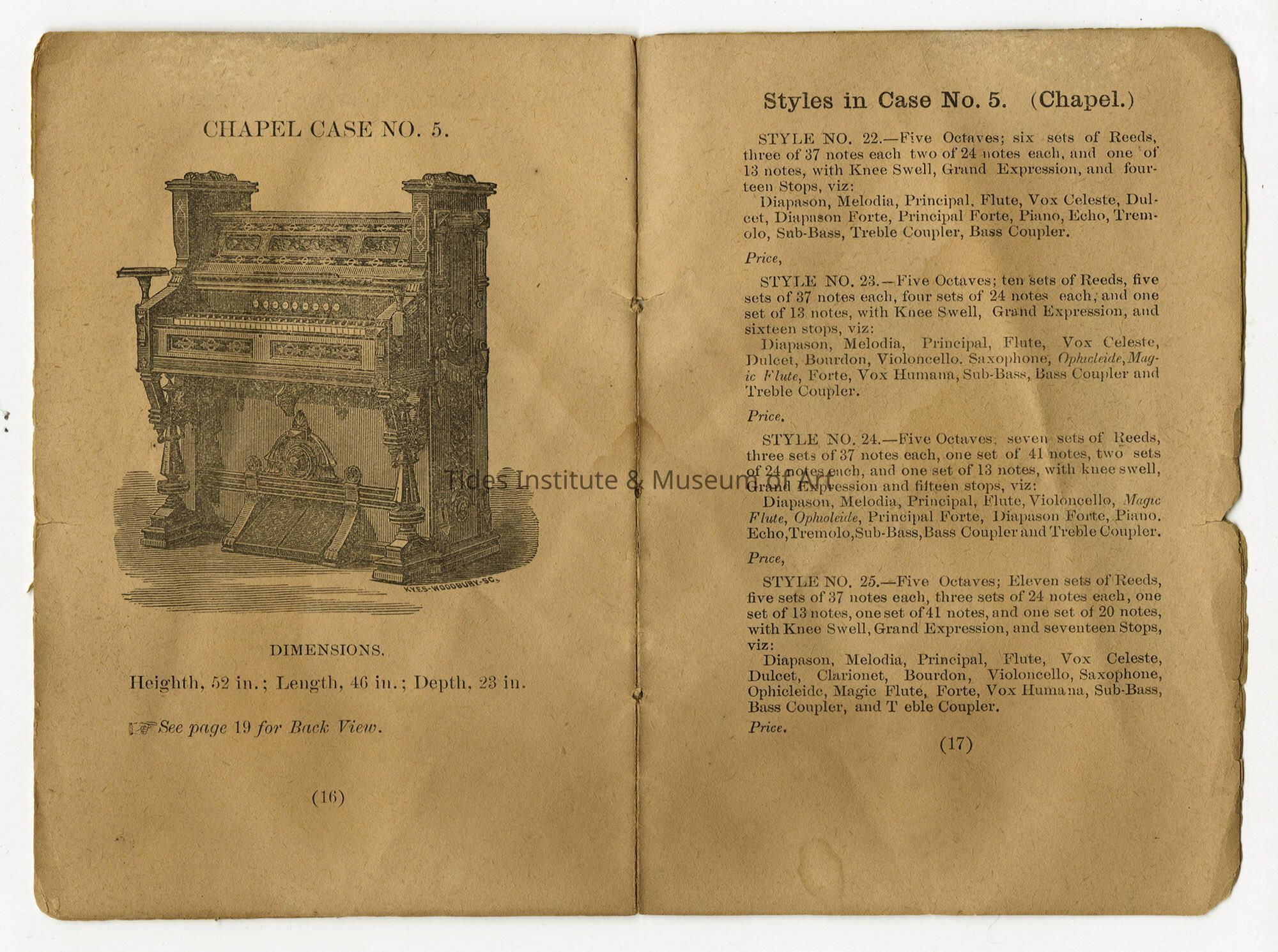 Chapel Case No. 5. From Catalogue of Wm. E. Leighton & Co's Cabinet Organs Cabinet Organs [Pembroke, Maine] |[No Artist Defined]