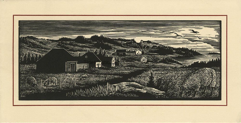 Christmas Card [Dark landscape with Houses and Sheep] | Pauline InmanDescription