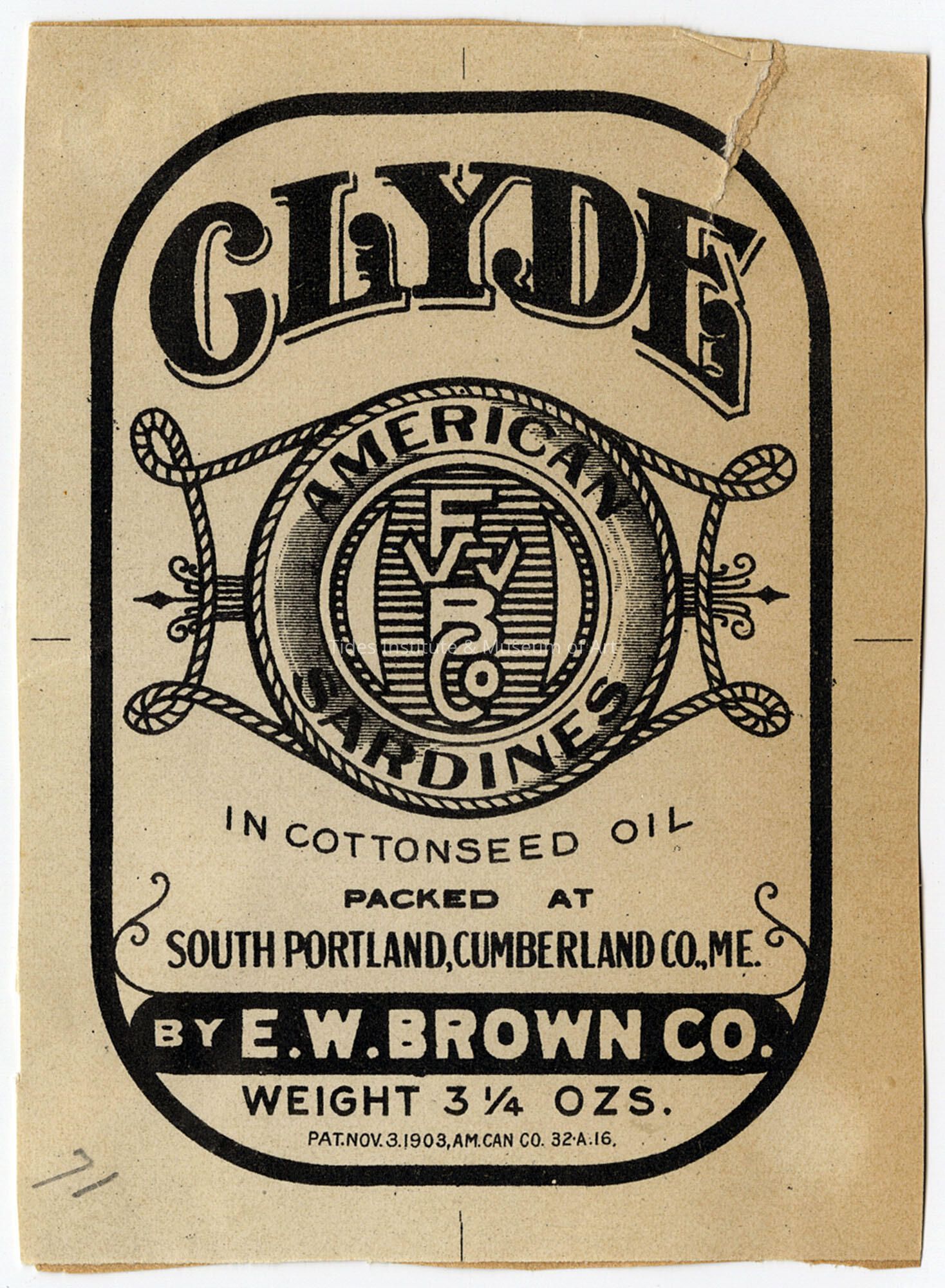 Old Accession Number: 749 Circa: 1903 Description: Packed as South Portland, Cumberland Co., ME. By E.W. Brown Co.