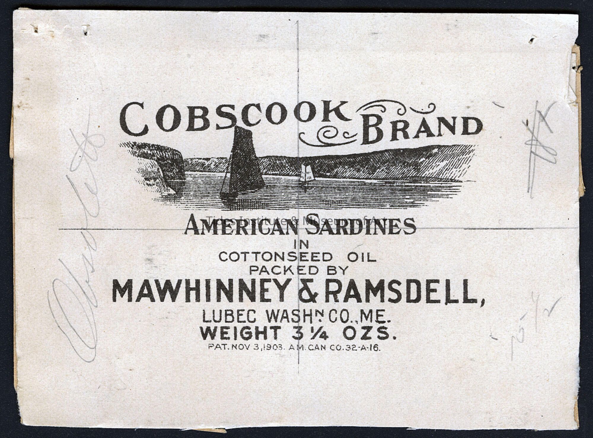 Old Accession Number: 755 Circa: 1903 Description: Packed By Mawwhinney and Ramsedell. Lubec Washinton County, Maine.