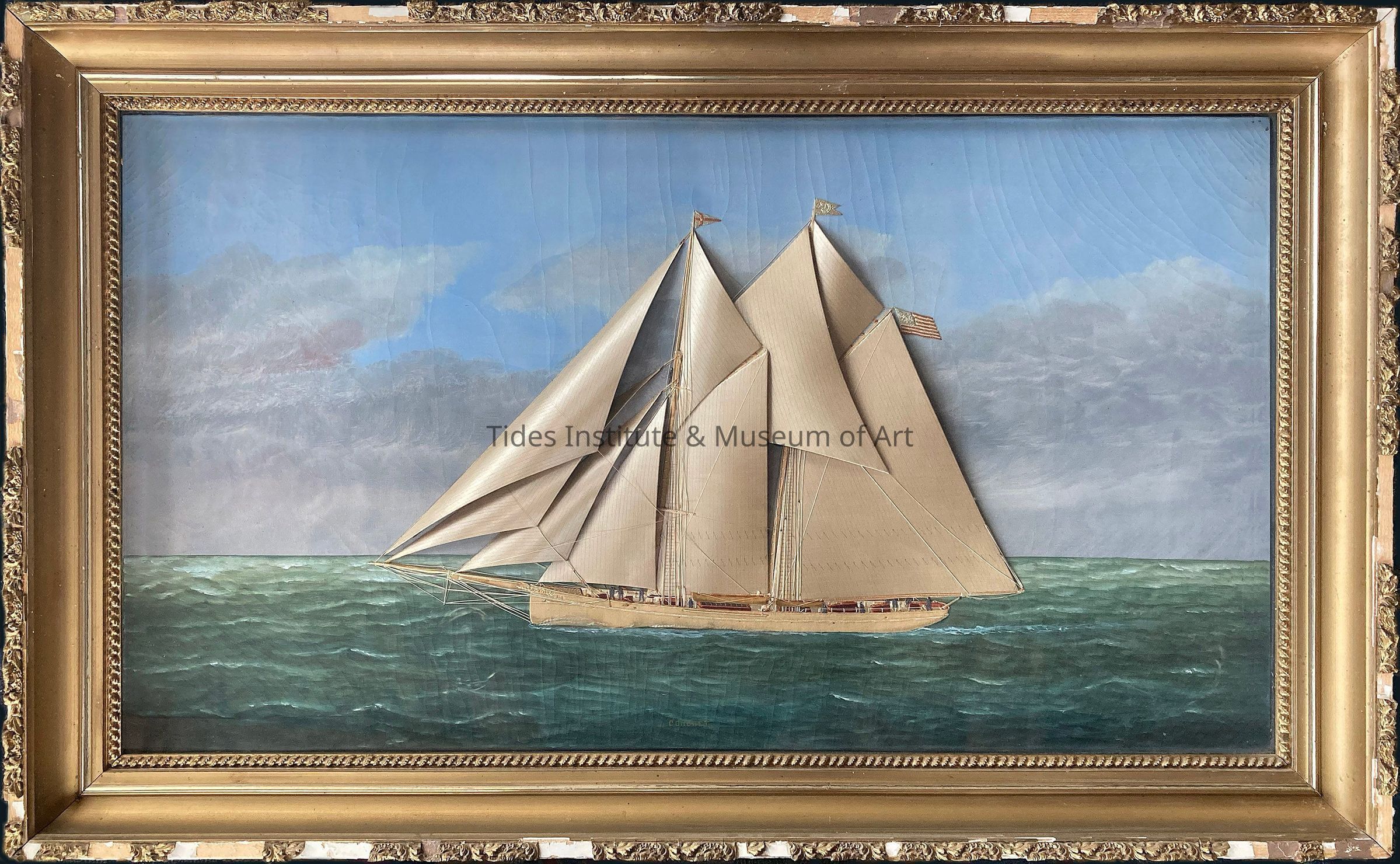 Relief model of the yacht, "Coronet," on permanent loan from the Kimball Family Trust, 2019. Signed permanent loan agreement on file.