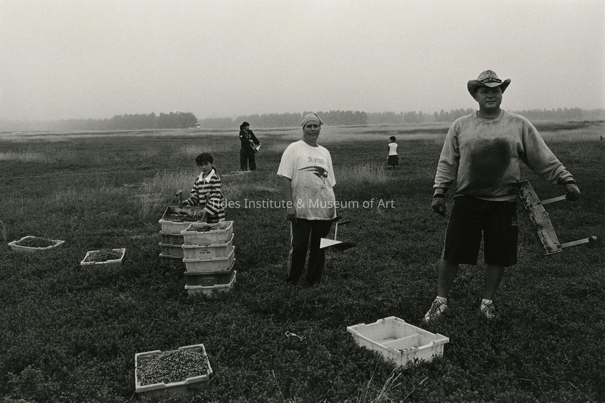 Photo caption: David Stess, gelatin silver photographic print, “Corry and Family and Crew, Northeastern Blueberry,” 11” x 14”, c.2002.