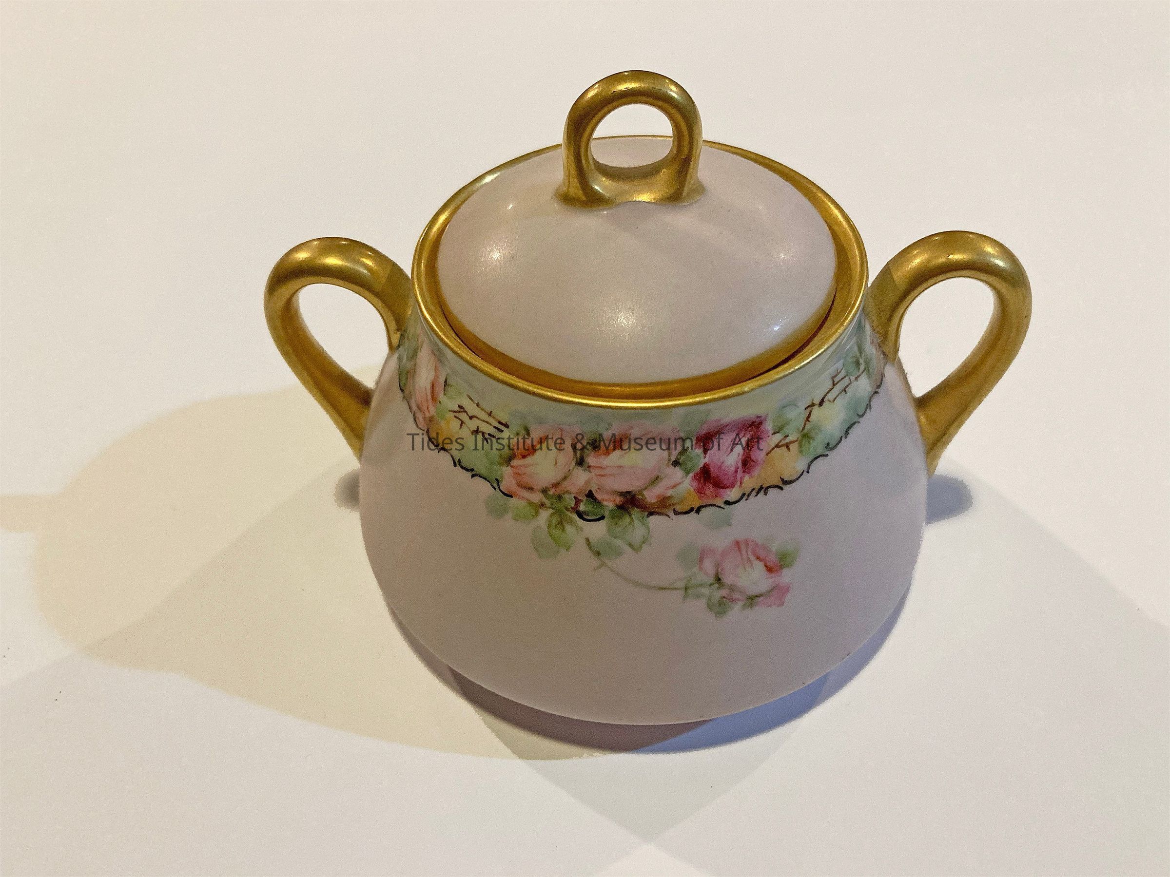 Covered Sugar Bowl. Hand Painted China | Martha "Mattie" Waide (1857-1929), Eastport, MaineDescription