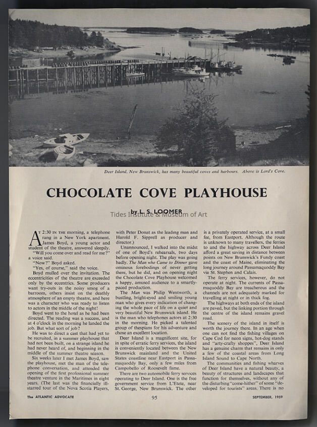 Chocolate Cove Playhouse | L.S. Loomer | The Atlantic Advocate, September, 1959, pp. 95 - 98
