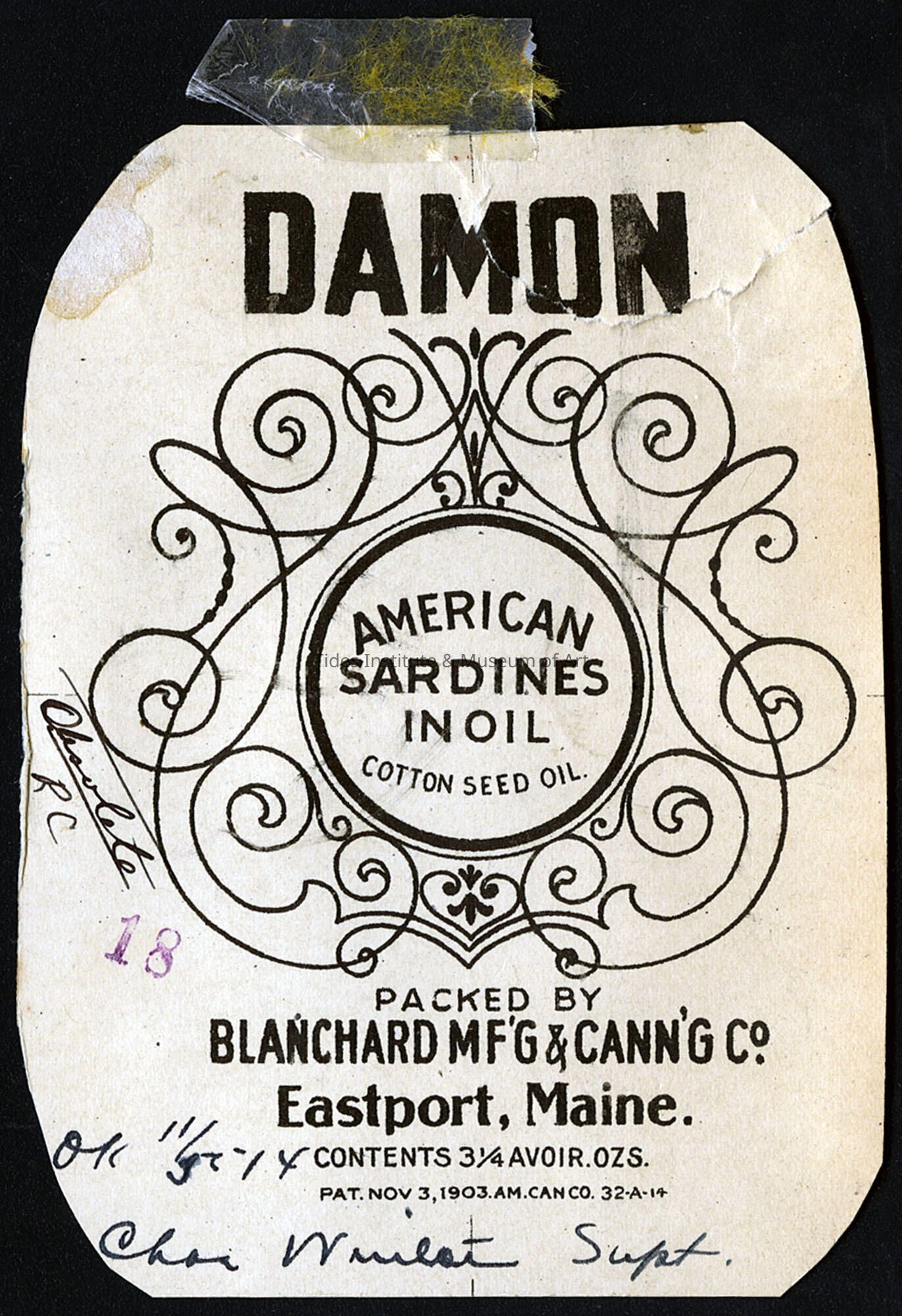 Circa: 1903 Old Accession Number: 774 Description: Packed by Blanchard MF’G & Cann’g Co. Eastport, Maine.