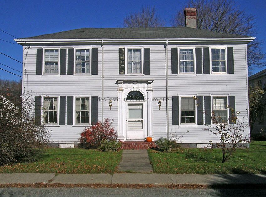 This two story, hip roof federal style house was built in 1820 by Charles Peavey who designed and built several other houses in Eastport along with the North Baptist Church building. Known as the Daniel Kilby house, the house is part of the National Register Boynton Street Historic District. The house has a five bay front with center doorway that is capped with a fanlight and flanked by ornamental pilasters. The house is one of several on Boynton Street of similar design. This house was built on the site of where the British military signed Moose Island back to U.S. authorities in 1818. Daniel Kilby was a partner with AaronHayden and their wharf was also the main trading place for the Passamaquoddy tribe. In 1836 some of the rear extensions of the house were raised and finished to give increased accommodations. At this time a little martin bird house was added to the extension. It was built in the shape of a chapel with design by local architect and builder, Daniel Low.