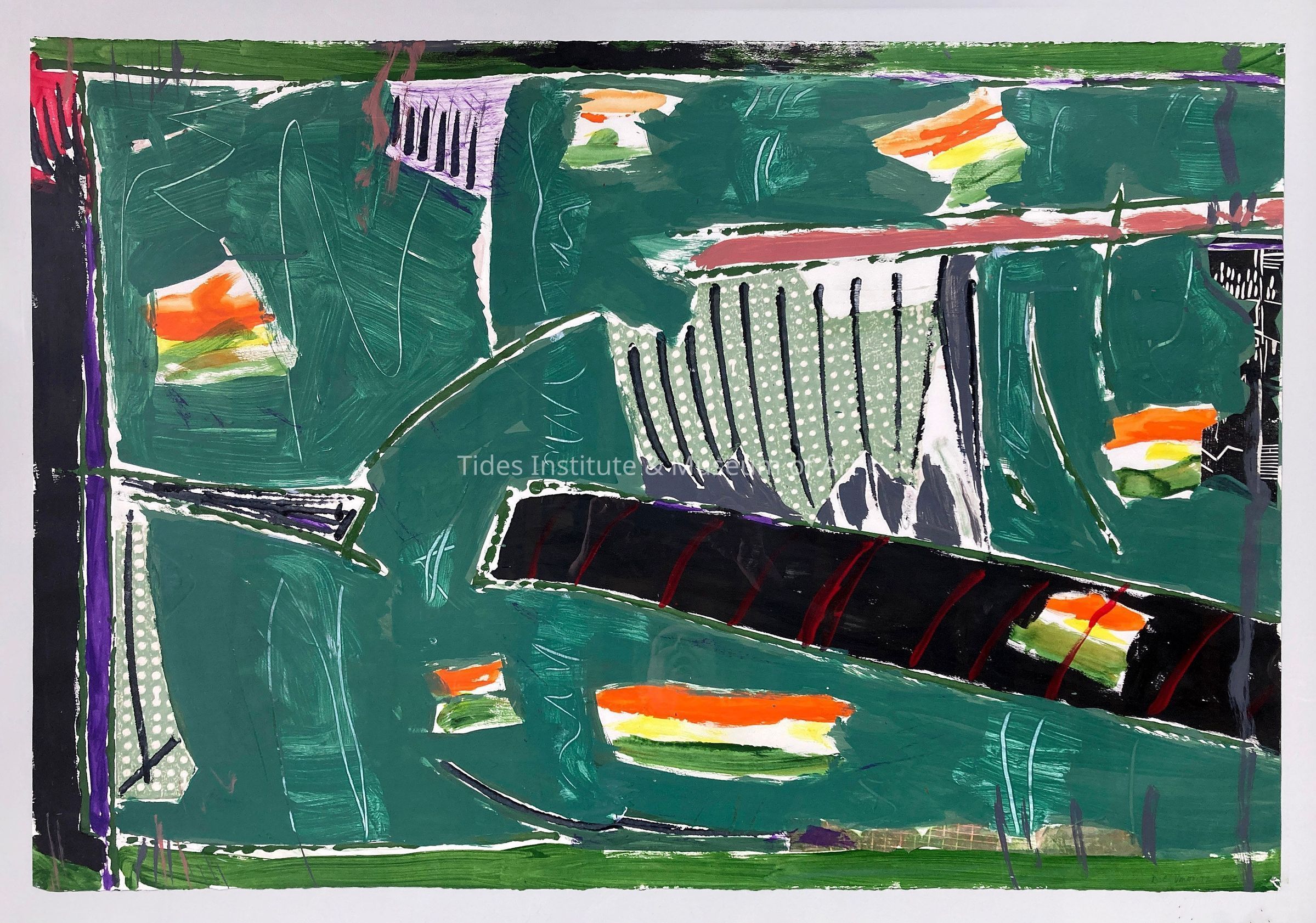 David Umholtz (1943-2014) | St. Andrews | Acrylic Collage | 34" x 48"