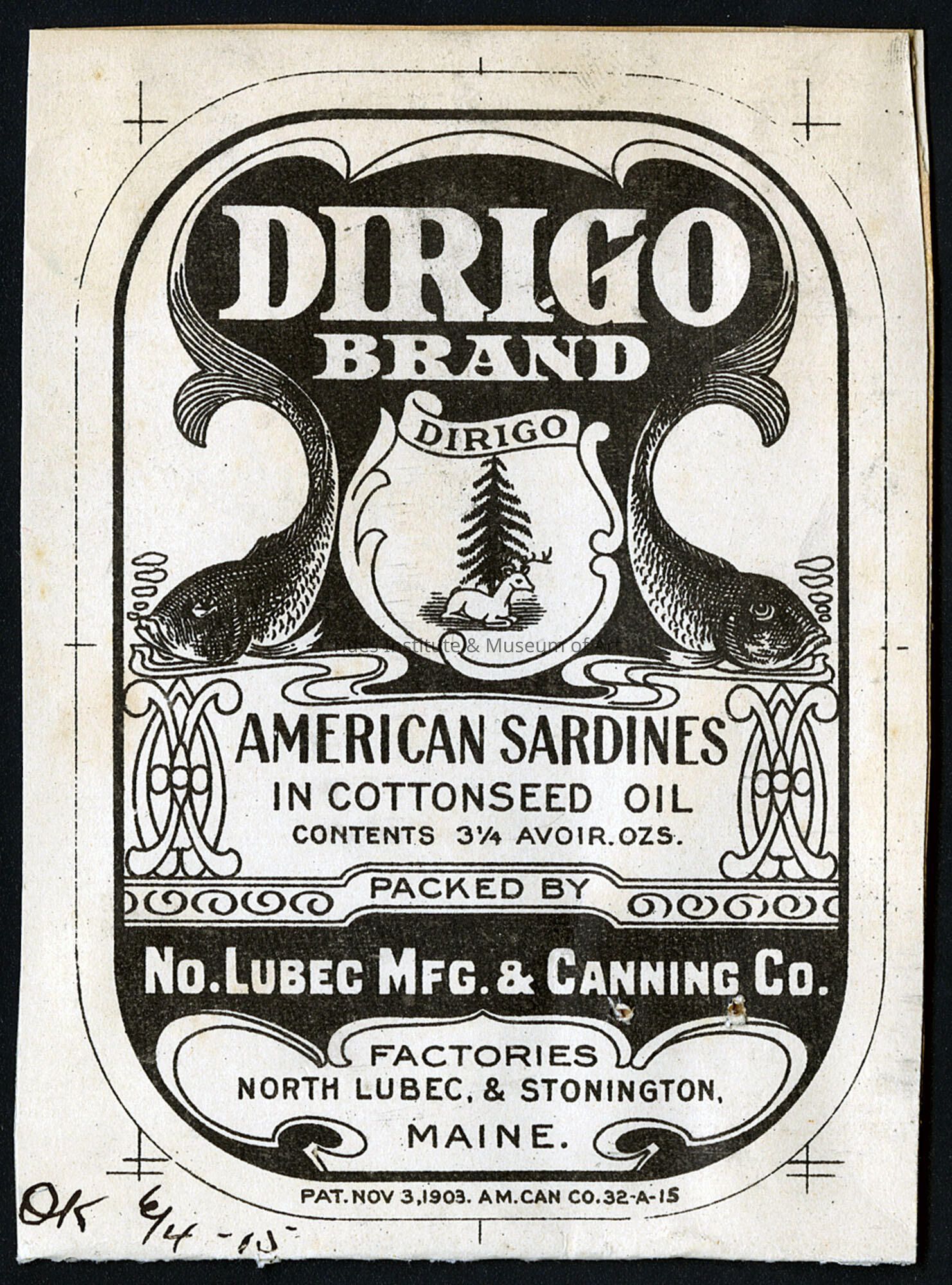 Old Accession Number: 766 Circa: 1903 Description: Packed by No. Lubec MFG. & Canning Co. Factories North Lubec and Stonington Maine.