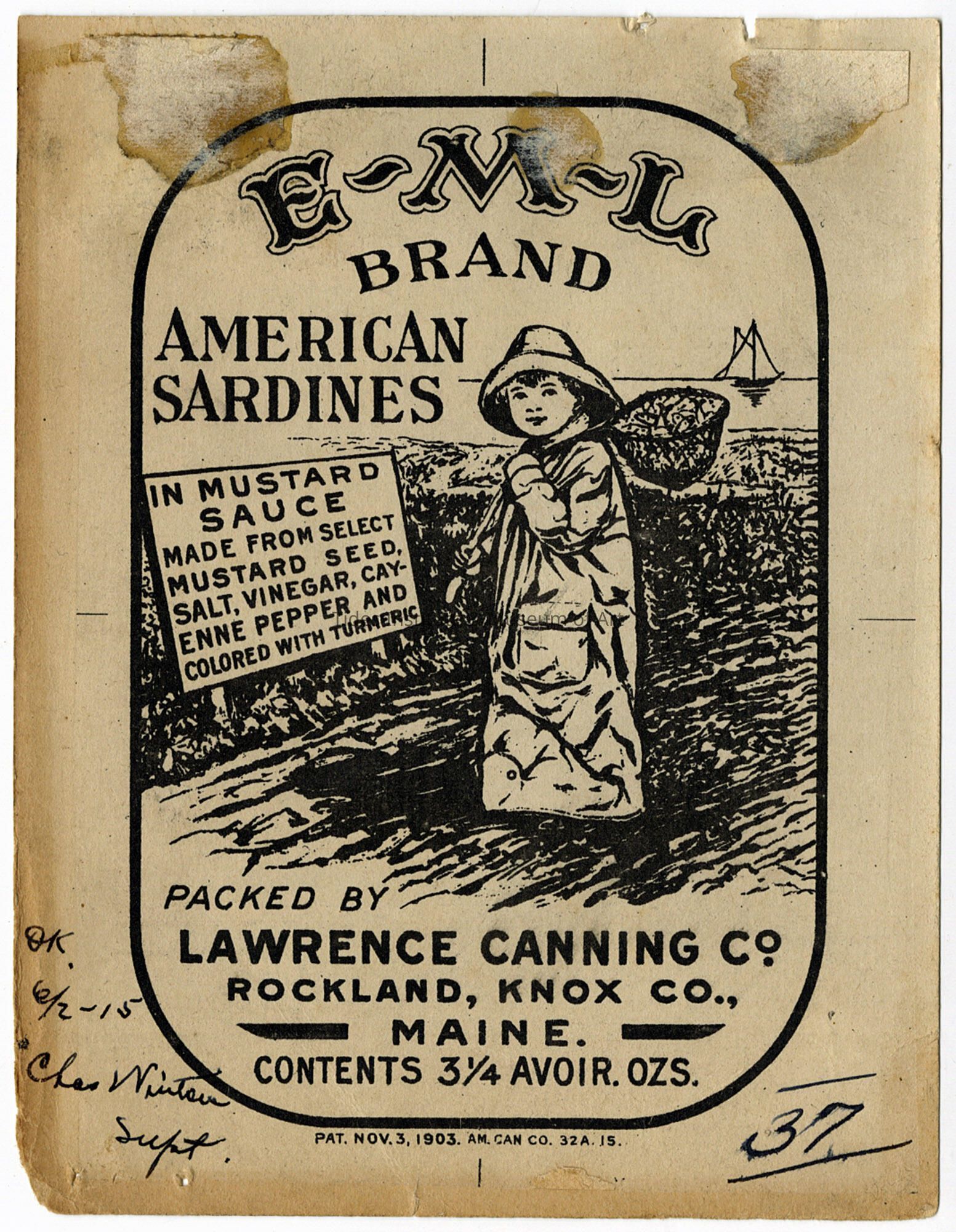 Old Accession Number: 781 Circa: 1903 Description: Packed by Lawrence Canning Co. Rockland and Knox, ME.