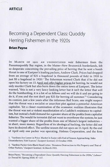 Becoming a Dependent Class: Quoddy Herring Fishermen in the 1920s | Brian Payne | Labour / Le Travail, 81 (Spring 2018), pp. 87 - 117