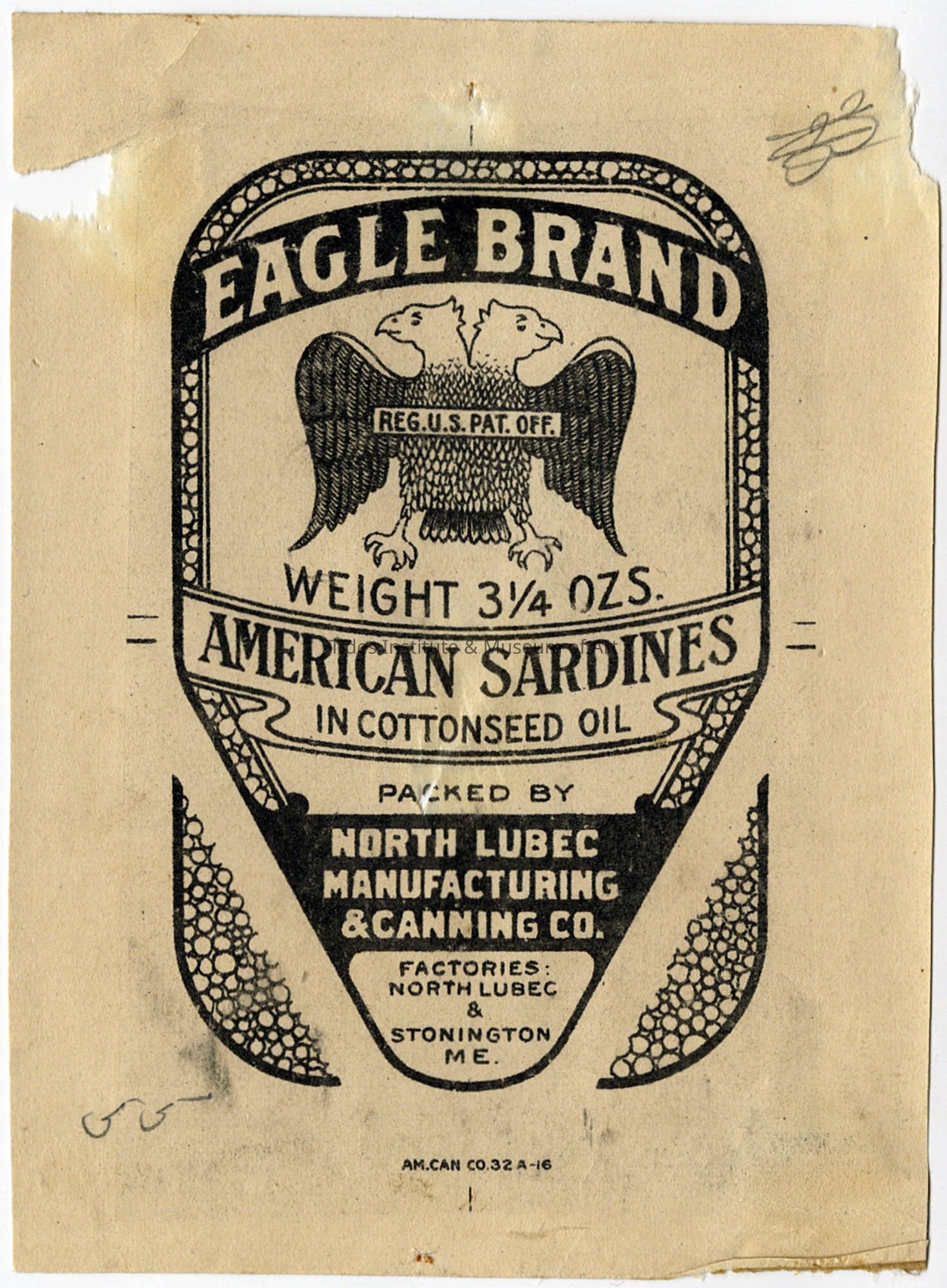 Old Accession Number: 779 Description: Packed by North Lubec Manufacturing & Canning Co. Factories in North Lubec and Stonington, ME.