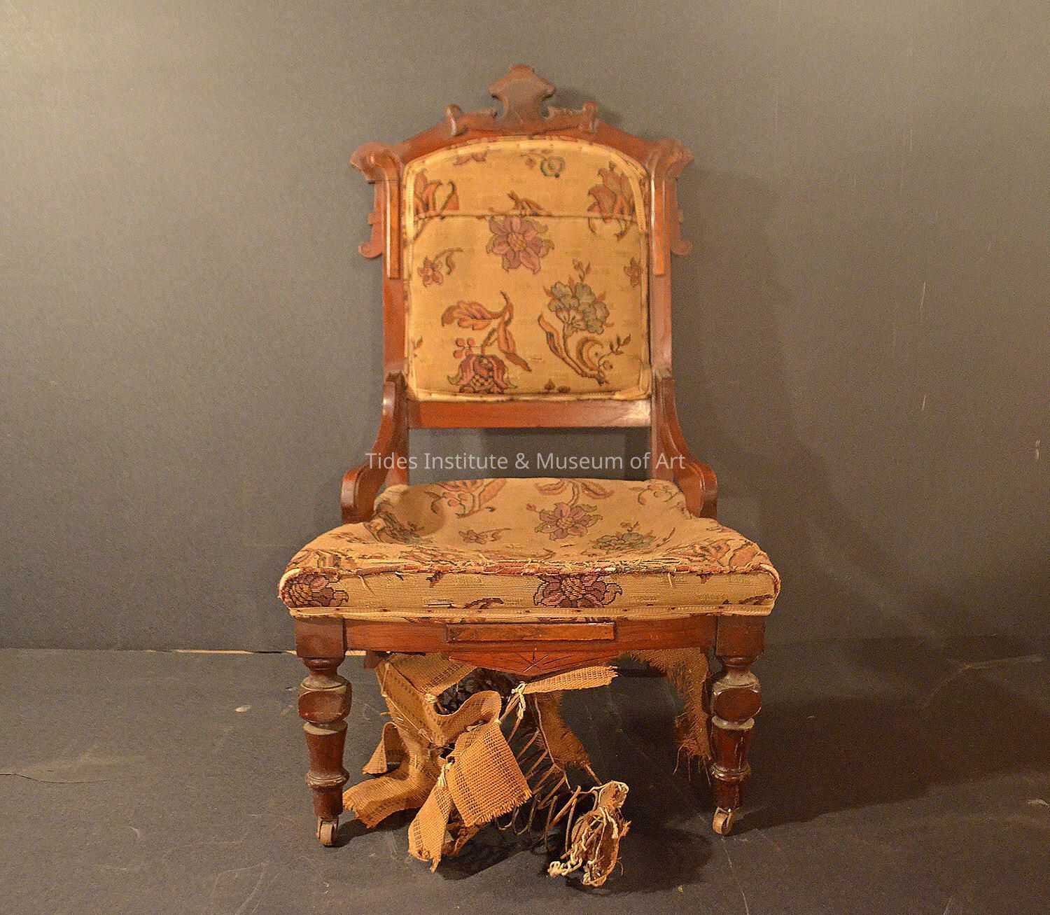 Old Accession Number: 2294 Eastlake living room chair, c. 1880. Furniture had come down through the Flagg Family of Eastport, Maine.