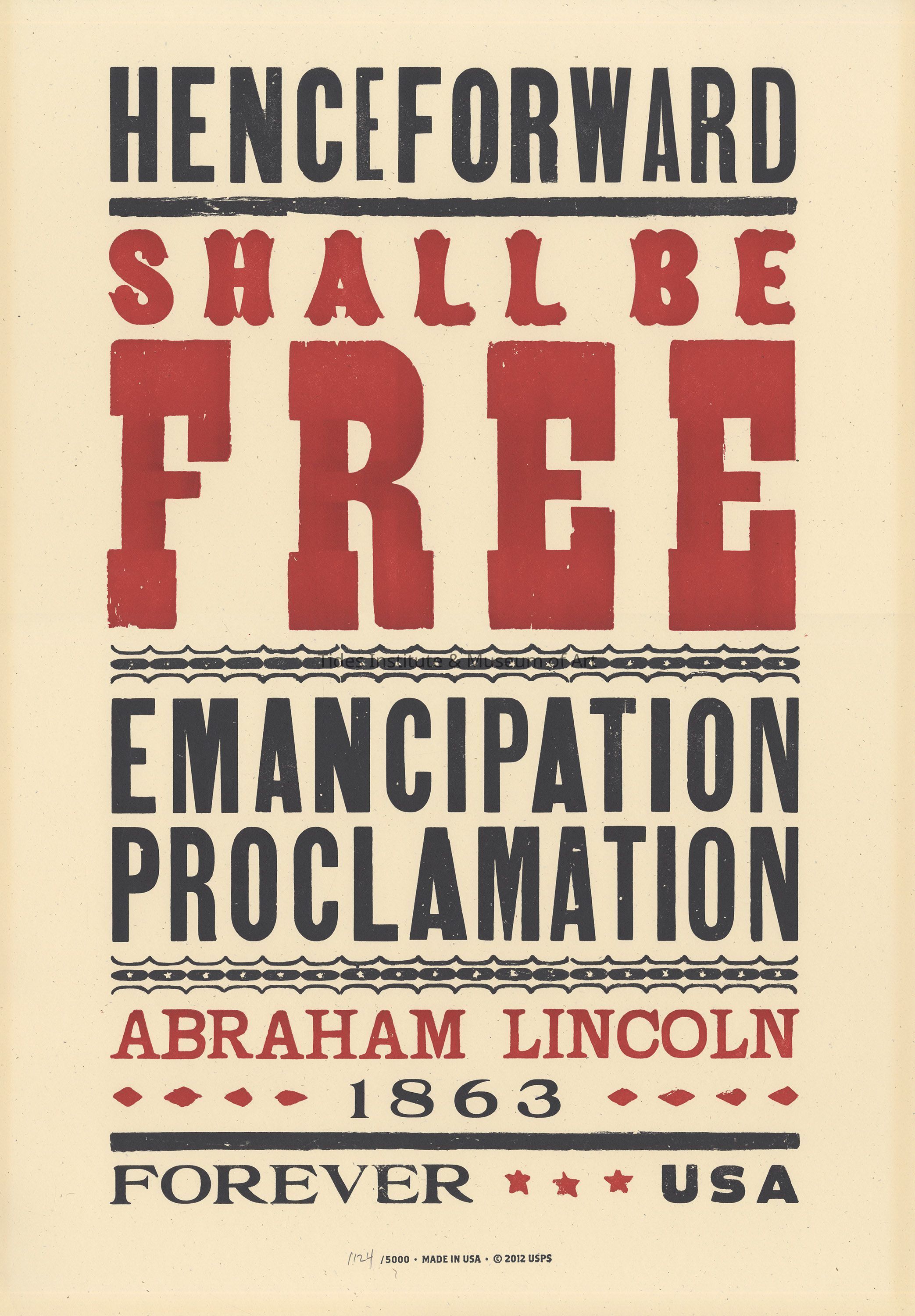 usps stampNashville’s Hatch Show Print, one of the oldest working letter print shops in America, was recently tapped to assist in designing and producing the U.S. Postal Service’s 2013 Emancipation Proclamation (Forever ®) stamp, which commemorates the 150th anniversary of the proclamation signed by President Abraham Lincoln on Jan. 1, 1863.