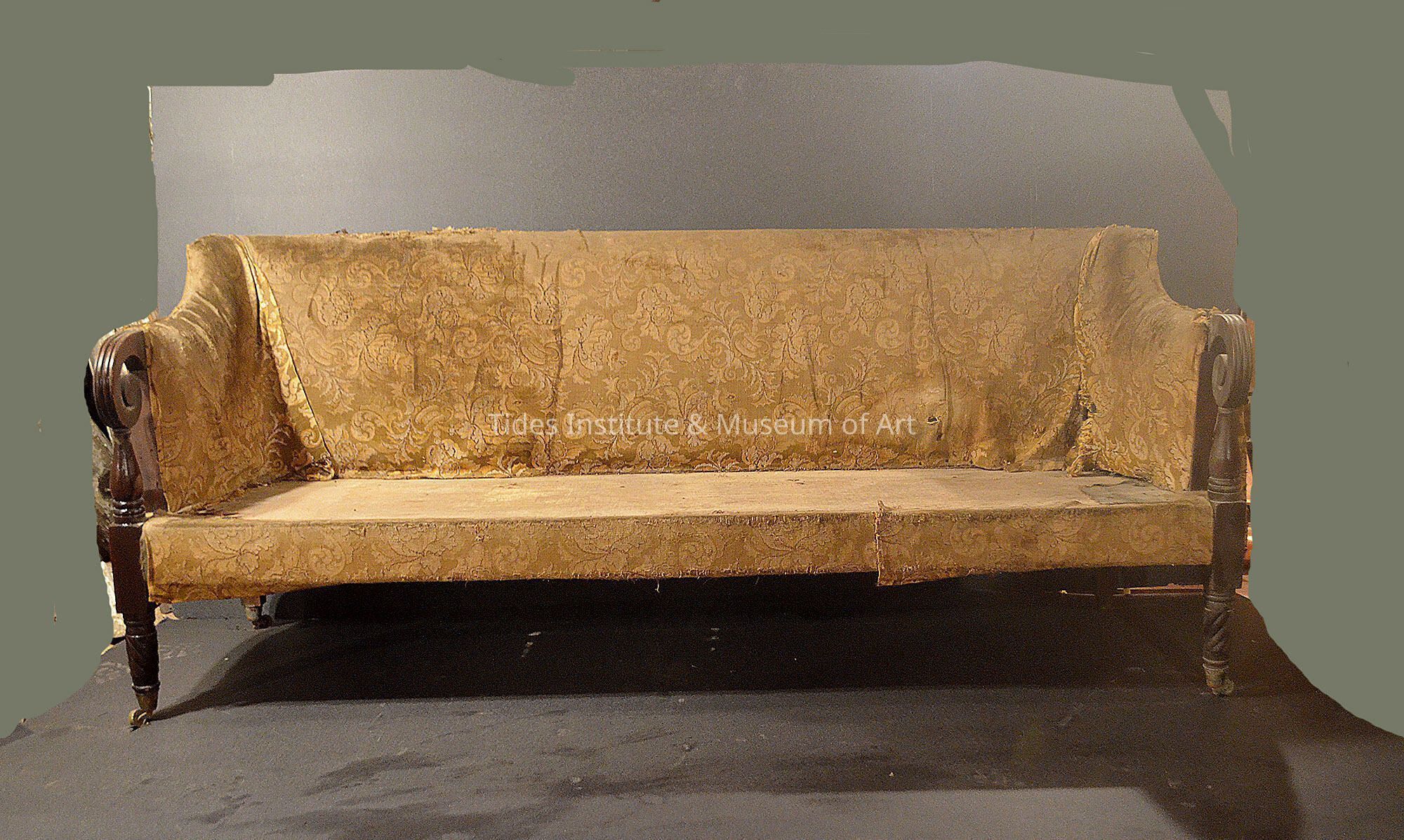 Old Accession Number: 2281 Sheraton Sofa, c.1820. Gift from Gregory Noyes, 122 Water Street, Eastport, Maine. From Grady House, 1 Adams Street, Eastport, Maine.