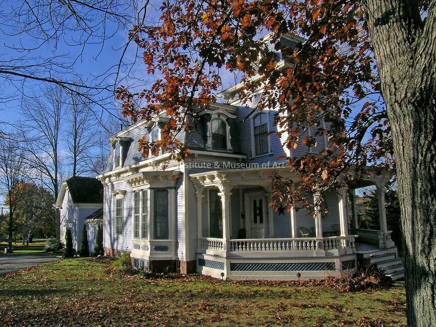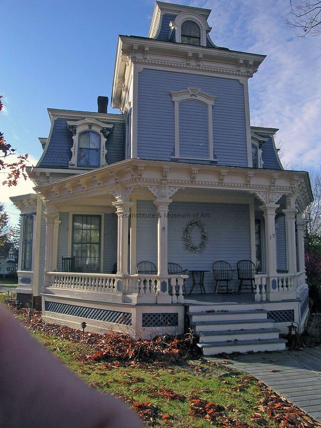 The Frank Campbell House is a remarkable two-story Second Empire style frame dwelling featuring a variety of ornamental woodwork as well as a front tower encircled by a wrap-around porch. Its three-bay facade is dominated by the tower which is capped by a bell cast mansard roof punctuated on each of its four sides by round arched dormers. The windows have heavily molded and bracketed hoods, and the cornices of both the porch and main body of the house have bracketed and denticulated cornices. A secondary entrance tower and porch are located on the west elevation. The lower slope of the mansard roof is sheathed in slate. There is a carriage house at the rear of the lot.