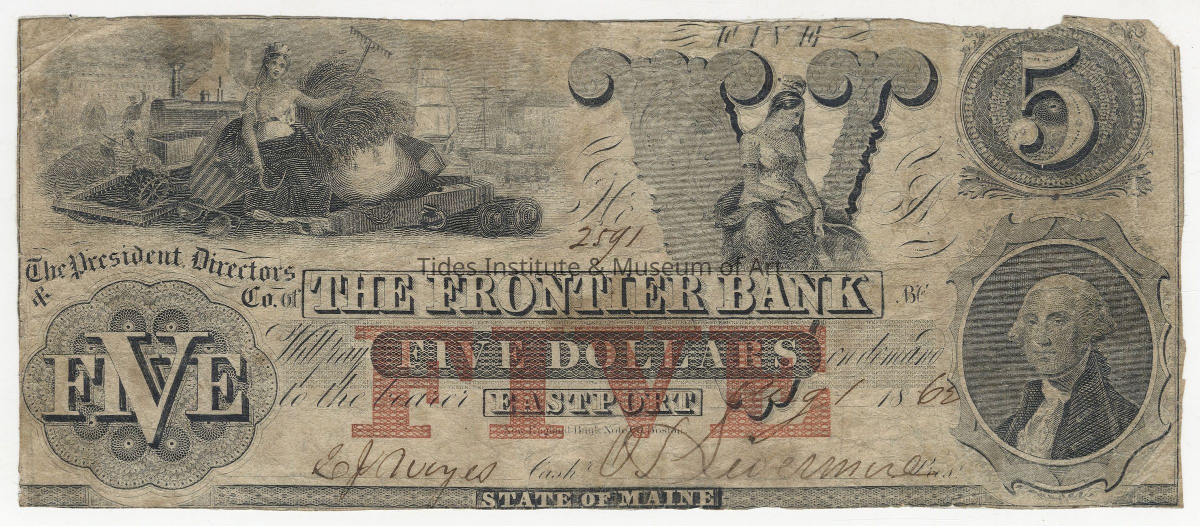 Frontier Bank | Eastport, Maine | Five Dollar Bank Note | 1862