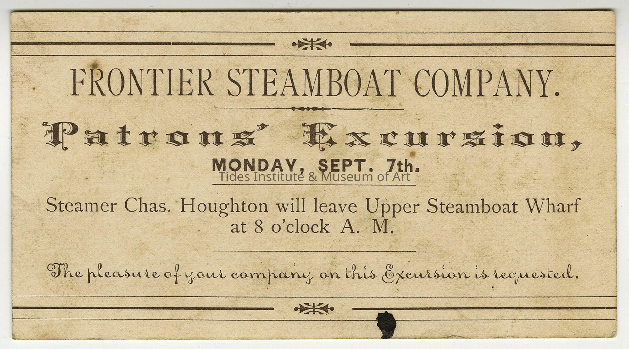 Frontier Steamboat Company. Patrons' Excursion | Calais, Maine | Trade Card
