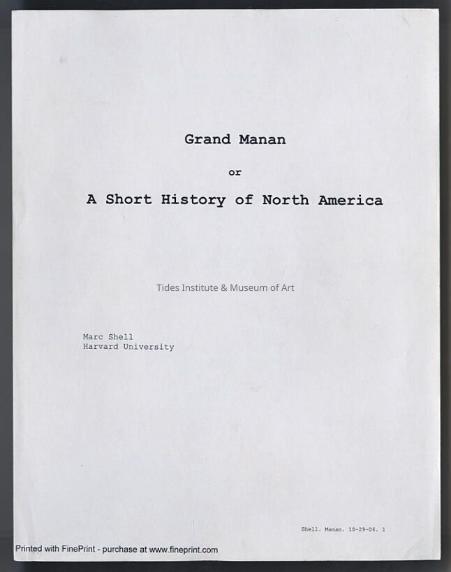 Grand Manan or A Short History of North America | Marc Shell | Harvard University | 2006