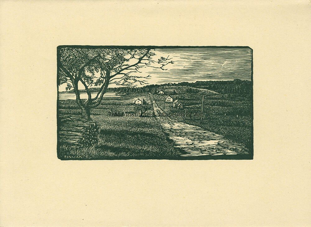 Artist: Pauline Inman Medium: Woodblock engraving Old Accession Number: 1888 Description: Printed in green ink. Greeting card from Polly and Bob Inman. 1 of 2 copies.