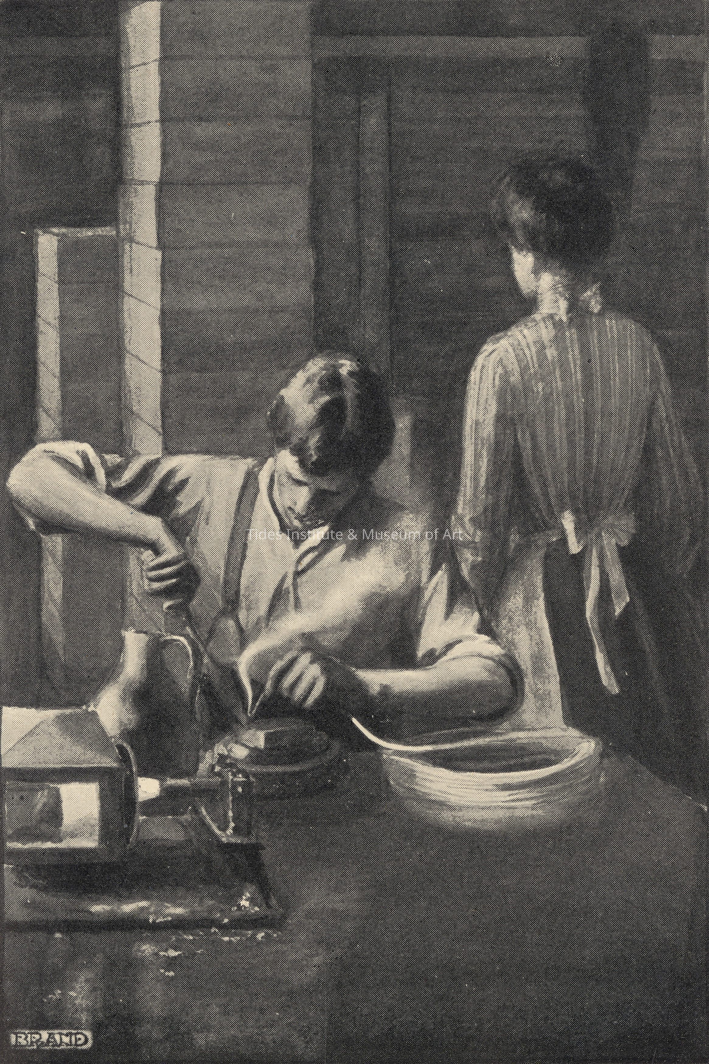 Guy Bent Over His Work With Redoubled Energy | Illustration from A Case of Sardines by Charles Poole Cleaves | 1904