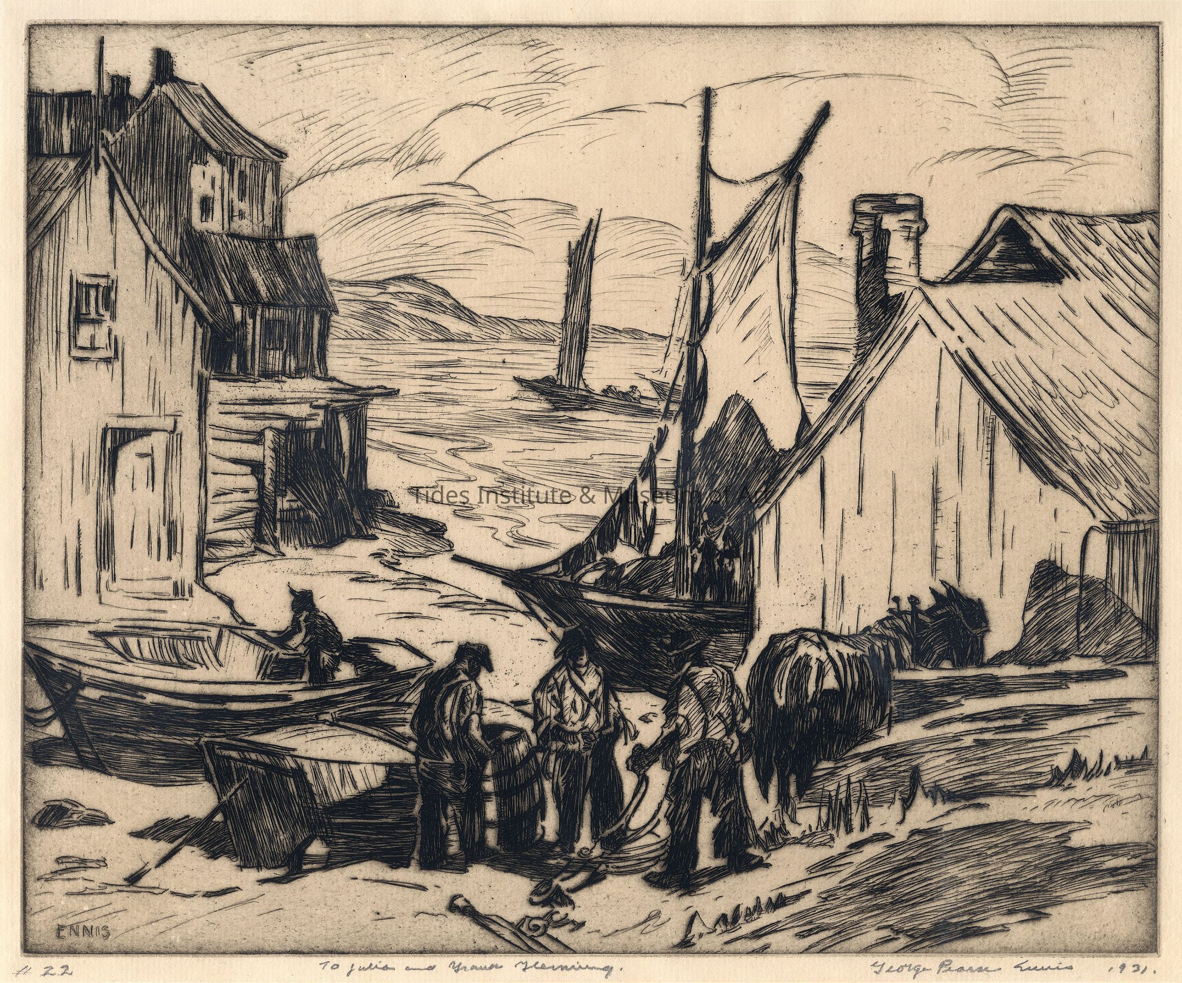 Artist: George Pearse Ennis Medium: Dry point etching Circa: 1931 Old Accession Number: 289 Description: #22 Inscribed to: Dimensions: 20 3/8" w x 17 1/2" h (framed)