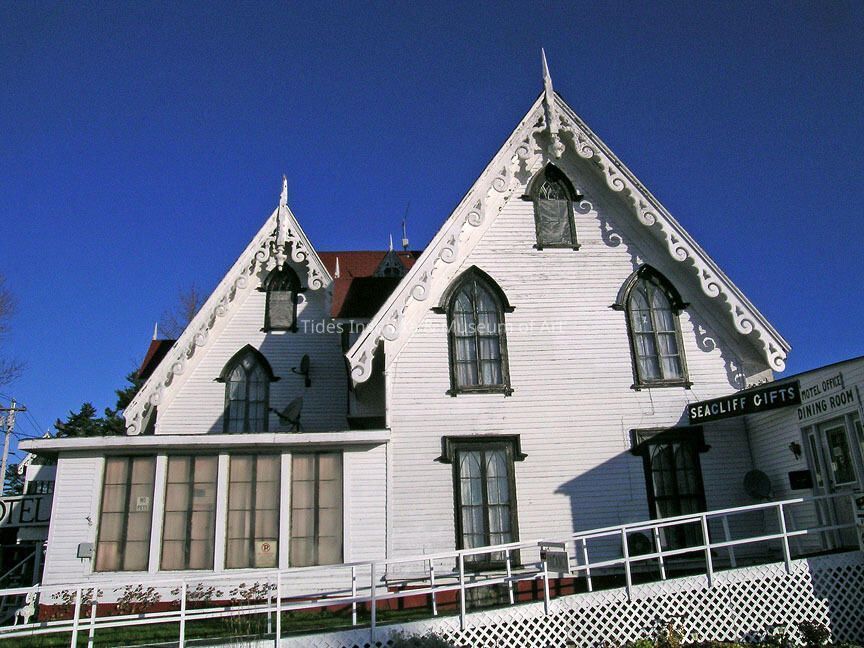 Called by historian Frank Beard, and architectural historian Gregory K. Clancey, the "most authentically Gothic house in eastern Maine", this 2-114 story wooden frame Gothic Revival building has two steeply pitched connected roofs in the main section. The main entrance is off a screen porch at the forward gable end. Above the eaves are twin box dormers, while the broad walls are interrupted by arched square windows crowned with lintels. The roof has been shingled with asphalt but the walls are covered with clapboards. Between 1861 and 1863 this residence was built by Hemietta Brewer, wife of Captain John Nememiah Marks Brewer, and daughter-in-law of General John Brewer. Now known as the Redclyffe Motel, this buildings new owners have restored the interior decoration in its original Greek Revival style. It was placed on the National Register of Historical Places in 1983. FAB, JCB