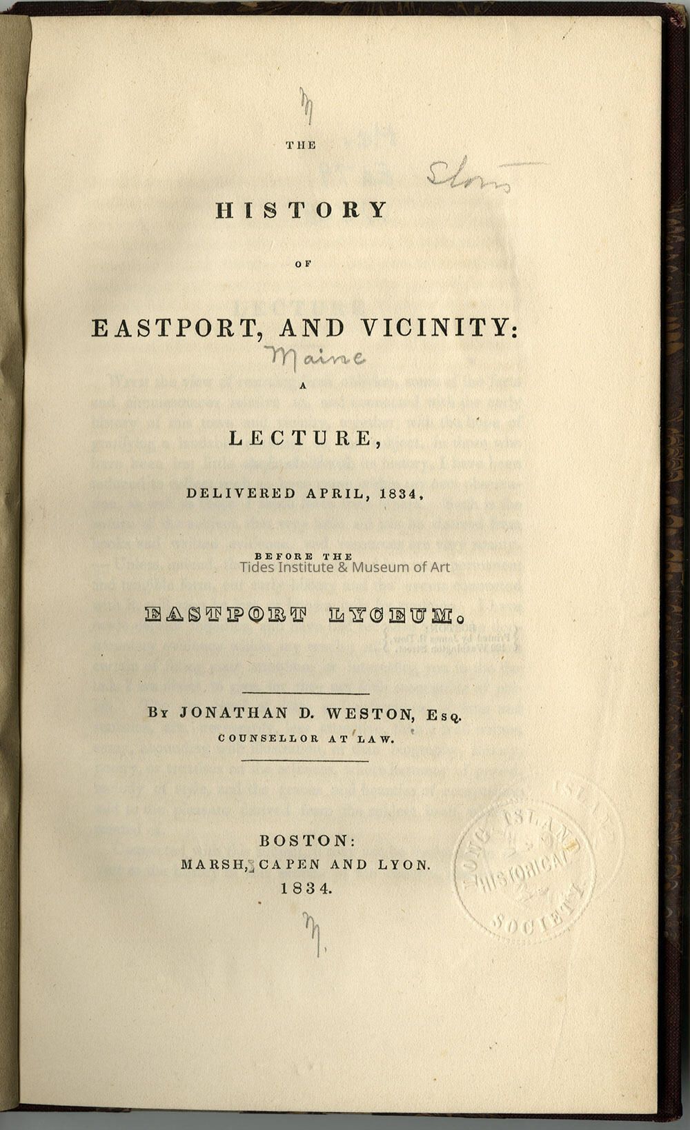 History of Eastport and Vicinity [Title Page of Book] | Jonathan D. Weston